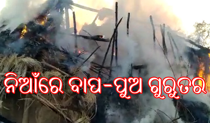 ପରଜଙ୍ଗ,୨୨ା୧୨(ଡି.ଏନ୍.ଏ.): ଢେଙ୍କାନାଳ ଜିଲା ପରଜଙ୍ଗ ଥାନା ଖଇରପଶି ଗାଁରେ ଏକ ଅଭାବନୀୟ ଘଟଣା ଘଟିଛି। ଘରେ ନିଆଁ ଲାଗି ବାପପୁଅ ଗୁରୁତର ହୋଇଛନ୍ତି। ଗୁରୁତର ଦ୍ୱୟ ହେଲେ ବାପା ଚତୁର୍ଭୁଜ ନାୟକ ଏବଂ ପୁଅ ରାଜେଶ । ତାଙ୍କୁ ଚିକିତ୍ସା ପାଇଁ କାମାକ୍ଷାନଗର ଡାକ୍ତରଖାନାରେ ଭର୍ତ୍ତି କରାଯାଇଛି।