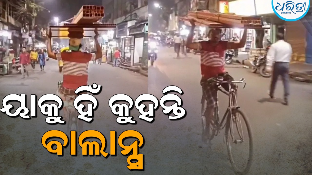 ଭିଡିଓରେ ବ୍ୟକ୍ତି ଜଣକ ହ୍ୟାଣ୍ଡେଲ ଛାଡ଼ି ରାସ୍ତା ମଝିରେ ସାଇକେଲ ଚଲାଉଛନ୍ତି, ଏହି ସମୟରେ ତାଙ୍କ ମୁଣ୍ଡରେ କିଛି ସାମଗ୍ରୀ ରଖିଛନ୍ତି। ତାଙ୍କର ବାଲାନ୍ସ ଏତେ ଆଶ୍ଚର୍ଯ୍ୟଜନକ ଯେ, ଅତିକ୍ରମ କରୁଥିବା ଯାନବାହନ ମଧ୍ୟ ତାଙ୍କୁ ଅଣଦେଖା କରୁଥିବା ପରି ମନେହୁଏ। ସେ ଖୁସିରେ ଚଲାଉଛନ୍ତି, ତାଙ୍କ ସାଇକେଲର ହ୍ୟାଣ୍ଡେଲ ବଙ୍କା ହେଉନି କି ସେ ଟଳମଳ ବି ହେଉନାହାନ୍ତି। ଏପରି ଆଶ୍ଚର୍ଯ୍ୟଜନକ କୌଶଳ ପ୍ରାୟତଃ ଭାରତରେ ଦେଖାଯାଏ।