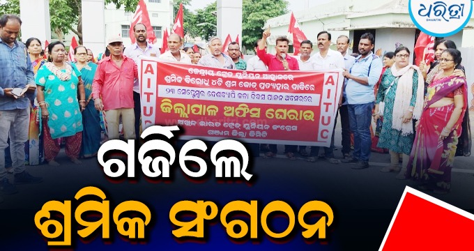 ଛତ୍ରପୁର,୨୩।୯(ସନ୍ତୋଷ ପାଢ଼ୀ): ଶ୍ରମିକ ବିରୋଧୀ ଶ୍ରମ କୋଡ଼ ବାତିଲ, ମାସିକ ସର୍ବନିମ୍ନ ୨୬ ହଜାର ଦରମା ଓ ପୁରୁଣା ପେନସନ ଲାଗୁକର ଦାବିରେ କେନ୍ଦ୍ରୀୟ ଶ୍ରମିକ ସଂଗଠନଗୁଡ଼ିକ ପକ୍ଷରୁ ଆଜି ଦେଶବ୍ୟାପୀ କଳା ଦିବସ ପାଳନ କରିବା ପାଇଁ ଆହ୍ବାନ ଦେଇଥିଲେ। ଏହାର ଅଂଶ ବିଶେଷ ଭାବେ ସୋମବାର କେନ୍ଦ୍ରୀୟ ଶ୍ରମିକ ସଂଗଠନଗୁଡ଼ିକର ଛତ୍ରପୁର ଶାଖା ପକ୍ଷରୁ ସ୍ଥାନୀୟ ଜ଼ିଲାପାଳଙ୍କ କାର୍ଯ୍ୟାଳୟ ସମ୍ମୁଖରେ ବିକ୍ଷୋଭ ପ୍ରଦର୍ଶନ କରାଯାଇଥିଲା। କେନ୍ଦ୍ର ସରକାରଙ୍କ ଶ୍ରମିକ ବିରୋଧ ନୀତିଗୁଡ଼ିକୁ ଅତିଶୀଘ୍ର ବାତିଲ କରିବା ପାଇଁ ସ୍ଲୋଗାନ ଦେଇଥିଲେ। ଅତିଶୀଘ୍ର ଶ୍ରମ କୋଡ଼କୁ ବାତିଲ କରିବା,ସର୍ବନିମ୍ନ ଦରମା ମାସକୁ ୨୬ ହଜାର ଟଙ୍କା କରିବା ଆଦି ପାଇଁ ଦାବି କରିଥିଲେ। ପ୍ରଧାନମନ୍ତ୍ରୀଙ୍କ ଉଦ୍ଦେଶ୍ୟରେ ଏକ ସ୍ମାରକପତ୍ର ଜ଼ିଲାପାଳଙ୍କୁ ପ୍ରଦାନ କରାଯାଇଥିଲା।