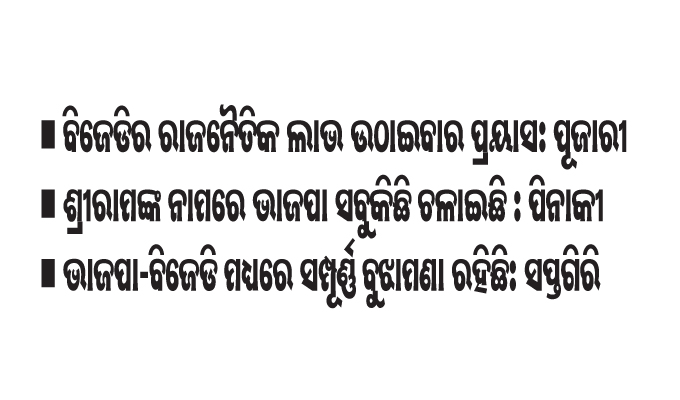 ଏନେଇ ବିଜେଡି ଏମ୍ପି ପିନାକୀ ମିଶ୍ର କହିଛନ୍ତି, ଥରେ ନୁହେଁ ୫ଥର କେନ୍ଦ୍ର ସରକାରଙ୍କ ନିକଟକୁ ସଂକଳ୍ପ ପଠାଯାଇଛି। ମିଥ୍ୟା ଛଡ଼ା ସେମାନେ କେବେହେଲେ ସତ୍ୟ କୁହନ୍ତି ନାହିଁ। ସବୁ କଥାରେ ସେମାନଙ୍କ ମିଛ। ସେମାନେ କେଉଁଠି କ’ଣ କହୁଛନ୍ତି ତା’ର କିଛି ଠିକ୍ ଠିକଣା ନାହିଁ। ସେମାନଙ୍କର ସବୁ ଶ୍ରୀରାମଙ୍କ ନାଁରେ ଚାଲିଛି ।