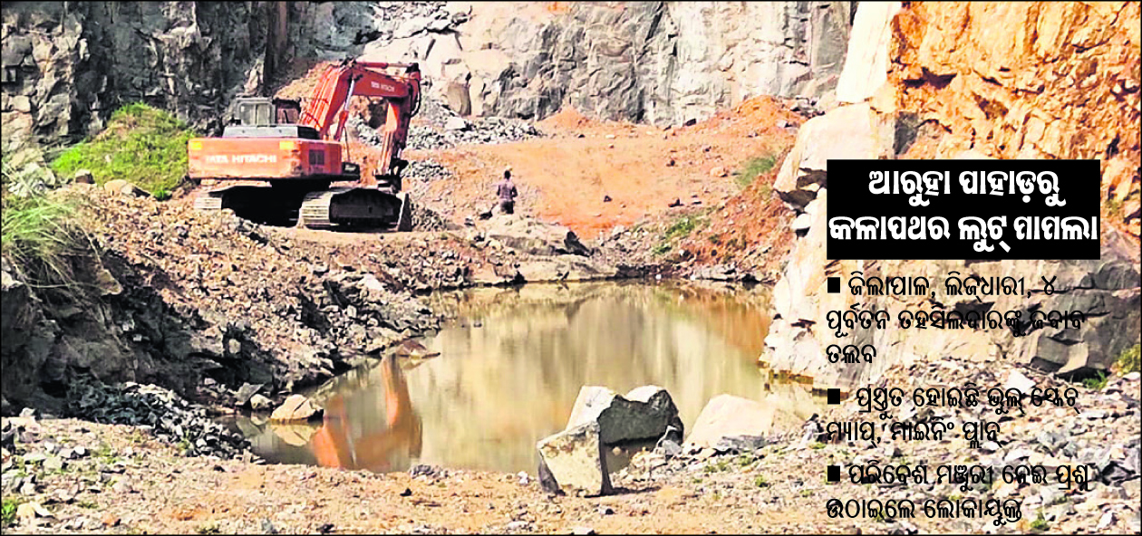 ସୂଚନାଥାଉ କି, ୧ା୯ା୨୦୧୭ରେ ଆରୁହା କଳା ପଥର ଖାଦାନ-୧ ଲିଜ୍ ପାଇଁ ଧର୍ମଶାଳା ତହସିଲ ପକ୍ଷରୁ ବିଜ୍ଞପ୍ତି ପ୍ରକାଶ ପାଇବା ପରେ ତ୍ରିନାଥ ଜେନାଙ୍କୁ ୫ ବର୍ଷିଆ (୪ା୧୨ା୨୦୧୭ରୁ) ଲିଜ୍ ପ୍ରଦାନ କରାଯାଇଥିଲା। ଜମି ରେକର୍ଡ ଅନୁସାରେ ଆରୁହା ପାହାଡ଼ରେ ୧୫୩.୬୩୦ ଏକର କଳାପଥର ଖାଦାନ ରହିଛି। ସେଥିରୁ ମାତ୍ର ୩ ଏକର ଖାଦାନ ଲିଜ୍ ଦିଆଯାଇଥିବାବେଳେ ଚଞ୍ଚକତା କରି ପ୍ରାୟ ୧୦୦ ଏକର ପର୍ଯ୍ୟନ୍ତ କଳା ପଥର ବେଆଇନ ଭାବେ ଉତ୍ତୋଳନ କରାଯାଉଛି। ଏଥିପାଇଁ ରାଜ୍ୟ ସରକାର ବିପୁଳ ପରିମାଣର ରାଜସ୍ବ ହରାଇଛନ୍ତି। ଏଥିରେ ସ୍ଥାନୀୟ ପୋଲିସ ଓ ଧର୍ମଶାଳା ତହସିଲ ପ୍ରଶାସନର କେତେଜଣ ସହଯୋଗୀ ହୋଇଥିବା ନେଇ ସାମାଜିକ କର୍ମୀ ସର୍ବେଶ୍ୱର ବେହୁରାଙ୍କ ଅଭିଯୋଗ କ୍ରମେ ଓଡ଼ିଶା ଲୋକାୟୁକ୍ତରେ ୧୩୫୫/୨୦୨୦ରେ ଏକ ମାମଲା ରୁଜୁ ହୋଇଛି। ଖଣି ବିଭାଗର ବିଶେଷଜ୍ଞ ଦଳ ଦ୍ୱାରା ମାପଚୁପ କରାଗଲେ ଲୁଟ୍ ହୋଇଥିବା କଳାପଥରର ମୂଲ୍ୟ ୧୦୦ କୋଟିରୁ ଊର୍ଦ୍ଧ୍ୱ ଟଙ୍କା ହେବ ବୋଲି ଆବେଦନକାରୀ ବେହୁରା କହିଛନ୍ତି।