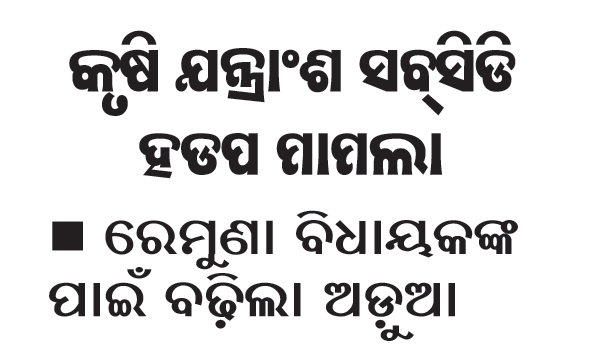 ଭୁବନେଶ୍ୱର, ୧୮।୫(ବ୍ୟୁରୋ): କୃଷି ଯନ୍ତ୍ରାଂଶ ସବ୍ସିଡି ହଡ଼ପ ଘଟଣାର ତଦନ୍ତ ପାଇଁ ଭିଜିଲାନ୍ସକୁ ନିର୍ଦ୍ଦେଶ ଦେଇଛନ୍ତି ଲୋକାୟୁକ୍ତ। ଜୁଲାଇ ୧୫ ମଧ୍ୟରେ ଆବଶ୍ୟକ ତଦନ୍ତ କରି ରିପୋର୍ଟ ପ୍ରଦାନ କରିବାକୁ ଭିଜିଲାନ୍ସ ନିର୍ଦ୍ଦେଶକଙ୍କୁ ଲୋକାୟୁକ୍ତ ଗତ ୧୩ ତାରିଖରେ ନିର୍ଦ୍ଦେଶ ଦେଇଥିବା ଜଣାପଡିଛି। ଏହି ନିର୍ଦ୍ଦେଶ ପରେ ନିଗମାନନ୍ଦ ଆସୋସିଏଟ୍ସର ମାଲିକ ତଥା ରେମୁଣା ବିଧାୟକ ସୁଧାଂଶୁ ଶେଖର ପରିଡାଙ୍କ ପାଇଁ ଅଡ଼ୁଆ ବଢ଼ିଛି।