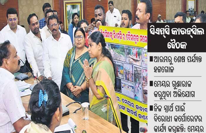 ବୈଠକ ଆରମ୍ଭରୁ ବିରୋଧୀ କର୍ପୋରେଟରମାନେ ବିଭିନ୍ନ ଦାବି ନେଇ ମେୟରଙ୍କୁ ଘେରିଥିଲେ। କଂଗ୍ରେସ କର୍ପୋରେଟର ସନ୍ତୋଷ ଭୋଳ କେତେକ ଦାବି ଉପସ୍ଥାପନ କରିଥିଲେ। ତାଙ୍କ ୱାର୍ଡରେ ଏକ ନାଳ ୩ ମାସ ହେବ ହୋଇପାରୁ ନ ଥିବାବେଳେ ୱାର୍ଡ ଦାୟିତ୍ୱରେ ଥିବା ଯନ୍ତ୍ରୀଙ୍କୁ ବଦଳି କରିବା ଏବଂ କର୍ପୋରେଟରଙ୍କୁ ନ ଜଣାଇ ଗୋଷ୍ଠୀ ସ୍ବାସ୍ଥ୍ୟକେନ୍ଦ୍ର ପରିଚାଳନା ପ୍ରଭୃତି ବିଷୟକୁ ନେଇ ଭୋଳ ମେୟରଙ୍କୁ ପ୍ରଶ୍ନ କରିଥିଲେ। ସେହିପରି କଂଗ୍ରେସ କର୍ପୋରେଟର ଜେ. କାମେଶ୍ୱର ରାଓ, ଭାଜପା କର୍ପୋରେଟର ଗଗନ ଓଝା ଓ ଦୀପକ ଦାସ ପ୍ରମୁଖ ବିଭିନ୍ନ ସମସ୍ୟାକୁ ନେଇ ବିରୋଧ ପ୍ରଦର୍ଶନ କରିଥିଲେ। ପରିସ୍ଥିତି ଏଭଳି ହୋଇଥିଲା ଯେ, ଉଭୟ ବିରୋଧୀ ଓ ଶାସକ ଦଳର କର୍ପୋରେଟର ମୁହଁାମୁହିଁ ହୋଇଥିଲେ। ସ୍ଥିତି ଉତ୍ତେଜନାପୂର୍ଣ୍ଣ ହେବାରୁ ମେୟର ପ୍ରାୟ ଦେଢ଼ ଘଣ୍ଟା ପାଇଁ ବୈଠକ ସ୍ଥଗିତ ରଖିଥିଲେ। ଏହାପରେ ବିରୋଧୀଙ୍କୁ ନେଇ ଏକ ବନ୍ଦ କୋଠରିରେ ବୈଠକ ଡାକି ଆଲୋଚନା କରିଥିଲେ ମଧ୍ୟ ତାହା ବିଫଳ ହୋଇଥିଲା। ଫଳରେ ପୁନର୍ବାର ବିରୋଧୀ କର୍ପୋରେଟରମାନେ ସମ୍ମିଳନୀ କକ୍ଷ ବାହାରେ ନାରାବାଜି ଦେଇଥିଲେ। ବୈଠକରେ ମେୟର ଧମକ ଦେବା ସହିତ ଦାଦାଗିରି କରୁଥିବା ନେଇ କର୍ପୋରେଟର ଭୋଳ ଏବଂ ଓଝା ଅଭିଯୋଗ କରିଥିଲେ। ଏନେଇ ମେୟର କହିଥିଲେ, ବିରୋଧୀ କର୍ପୋରେଟର ଯେଉଁ ଦାବି ଉପସ୍ଥାପନ କରିଛନ୍ତି ସେଗୁଡ଼ିକ ବ୍ୟକ୍ତିଗତ ସ୍ବାର୍ଥ ପାଇଁ। ସେମାନେ କାମକୁ ଗୁରୁତ୍ୱ ନ ଦେଇ ସେମାନଙ୍କ ବ୍ୟକ୍ତିଗତ ସ୍ବାର୍ଥକୁ ଗୁରୁତ୍ୱ ଦେଉଛନ୍ତି। ଯନ୍ତ୍ରୀ ବଦଳି ପ୍ରତି ସେମାନେ ଏତେ ଗୁରୁତ୍ୱ କ’ଣ ପାଇଁ ଦେଉଛନ୍ତି ବୋଲି ପ୍ରଶ୍ନ କରିଥିଲେ। ଏଭଳି ହଟ୍ଟଗୋଳରୁ ଶାସକ ଦଳ କର୍ପୋରେଟରମାନେ ମଧ୍ୟ ବାଦ ପଡି ନ ଥିଲେ। କର୍ପୋରେଟର ଦୀପ୍ତିମୟୀ ମୂଳିଆ, ବିକାଶ ବେହେରା, ପୂର୍ଣ୍ଣିମା ସ୍ବାଇଁ, ପ୍ରଦୀପ୍ତ ଖୁଣ୍ଟିଆଙ୍କ ସମେତ ବହୁ ଶାସକ କର୍ପୋରେଟର ବିରୋଧୀ ଦଳ ସମସ୍ତ କାଉନସିଲ ବୈଠକରେ ଏଭଳି ହଟଗୋଳ କରୁଥିବାରୁ ବୈଠକ ବାଧାପ୍ରାପ୍ତ ହେଉଥିବା ଦର୍ଶାଇ କକ୍ଷ ତ୍ୟାଗ କରି ମେୟରଙ୍କ କକ୍ଷରେ ପହଞ୍ଚିଥିଲେ। ଶାସକ ଦଳର ସମସ୍ତ କର୍ପୋରେଟରଙ୍କୁ ନେଇ ଏକ ରୁଦ୍ଧଦ୍ୱାର ବୈଠକ ମେୟରଙ୍କ ସମ୍ମିଳନୀ କକ୍ଷରେ ଅନୁଷ୍ଠିତ ହୋଇଥିଲା। ଉକ୍ତ ବୈଠକରେ ଶାସକ ଦଳ ସଂଖ୍ୟା ଗରିଷ୍ଠତା ଦର୍ଶାଇ ରିଜୋଲ୍ୟୁସନରେ ଥିବା ସମସ୍ତ କାର୍ଯ୍ୟକୁ ଅନୁମୋଦନ ମିଳିଥିଲା। ଶାସକ ଦଳର ଏଭଳି ମନମାନି କାର୍ଯ୍ୟକୁ ବିରୋଧୀମାନେ ତୀବ୍ର ନିନ୍ଦା କରିଥିଲେ।