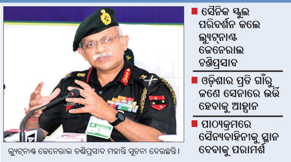 ସେ କହିଲେ, ଓଡ଼ିଶାର କଳିଙ୍ଗ ରେଜିମେଣ୍ଟ ସମ୍ପର୍କରେ ଏବେ ଅବଗତ ହୋଇଛି। କିନ୍ତୁ ବର୍ତ୍ତମାନ ସମୟରେ ଆମେ ରେଜିମେଣ୍ଟ ସଂଖ୍ୟା ବଢ଼ାଇବାକୁ ଗୁରୁତ୍ୱ ଦେଉନାହୁଁ। ଭିତ୍ତିୂଭମିର ଉନ୍ନତି, ଆଧୁନିକୀକରଣ ଉପରେ ଗୁରୁତ୍ୱ ଦେଉଛୁ। ଓଡ଼ିଶାରେ ପାଠ୍ୟକ୍ରମରେ ସୈନ୍ୟ ବାହିନୀ ସମ୍ପର୍କରେ ରହିବା ଉଚିତ। ଓଡ଼ିଶା ଲୋକଙ୍କ ସେନା ଉପରେ ଜ୍ଞାନ ଓ ସଚେତନତାର ଅଭାବ ରହିଛି। ତେଣୁ ଶିକ୍ଷା ଓ ଏନ୍‌ସିସିରେ ଯୋଗଦେଲେ ଏ ସମ୍ପର୍କରେ ଜାଣିହେବ ବୋଲି ଚଣ୍ଡିପ୍ରସାଦ ମତବ୍ୟକ୍ତ କରିଛନ୍ତି। ଓଡ଼ିଶାକୁ ବର୍ଷେ ପରେ ଆସିଛନ୍ତି। ଓଡ଼ିଶାର ଉନ୍ନତୀକରଣକୁ ସେ ପ୍ରଶଂସା କରିବା ସହ ପୁରୀର ଭିତ୍ତିଭୂମିରେ ଯେଉଁ ବିକାଶ ହୋଇଛି ତାହାକୁ ଦେଖି ସେ ଅଧିକ ଖୁସିବ୍ୟକ୍ତ କରିଛନ୍ତି।