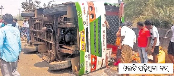 ଢେଙ୍କାନାଳ ଅଫିସ, ୨୩।୩ – କ୍ଷମତାଠାରୁ ଅଧିକ ଯାତ୍ରୀ ଧରି ଯାଉଥିବାବେଳେ ଢେଙ୍କାନାଳ ସଦର ଥାନା ବଣସିଂହ ସ୍ବାସ୍ଥ୍ୟକେନ୍ଦ୍ର ଛକ ନିକଟରେ ମଙ୍ଗଳବାର ମଧ୍ୟାହ୍ନ ପ୍ରାୟ ସାଢ଼େ ୧୨ଟାରେ ଭାରସାମ୍ୟ ହରାଇ ଘରୋଇ ମିନିବସ୍ ସମଲେଇ (ନଂ. ଓଆର୍ ୦୬ ଏଫ୍ ୧୬୦୫) ଓଲଟି ପଡ଼ିଛି। ଏଥିରେ ୩୫ ଯାତ୍ରୀ ଆହତ ହୋଇଛନ୍ତି। ୫ ଜଣଙ୍କ ଅବସ୍ଥା ଗୁରୁତର ଥିବାରୁ ସେମାନଙ୍କୁ କଟକ ସ୍ଥାନାନ୍ତର କରାଯାଇଛି।