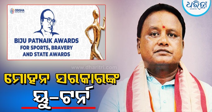 ଭୁବନେଶ୍ୱର,୨୧।୭: ବିଜୁ ପଟ୍ଟନାୟକ କ୍ରୀଡ଼ା ପୁରସ୍କାରର ନାମ ବଦଳାଇ ଦେବାର ଗୋଟିଏ ଦିନ ପରେ ୟୁ-ଟର୍ନ ନେଇଛନ୍ତି ରାଜ୍ୟ ସରକାର। ବିଜୁ ପଟ୍ଟନାୟକ କ୍ରୀଡ଼ା ପୁରସ୍କାର ନାଁ ପରିବର୍ତ୍ତନ ହେବନି । ପୂର୍ବ ପରି ବିଜୁ ପଟ୍ଟନାୟକଙ୍କ ନାମରେ କ୍ରୀଡ଼ା ପୁରସ୍କାର ଦିଆଯିବ। ରାଜ୍ୟ ପ୍ରତି ବିଜୁ ପଟ୍ଟନାୟକଙ୍କ ଅନେକ ଅବଦାନ ରହିଛି। ମୋ ସରକାର ବରପୁତ୍ରଙ୍କୁ ସମ୍ମାନ ଦିଏ ବୋଲି ରବିବାର ସୂଚନା ଦେଇଛନ୍ତି ମୁଖ୍ୟମନ୍ତ୍ରୀ ମୋହନ ଚରଣ ମାଝି।