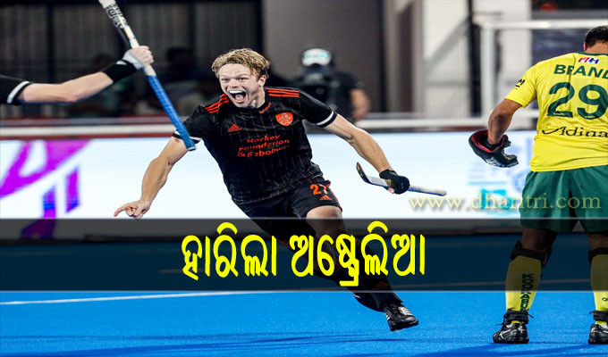 ଭୁବନେଶ୍ବର,୨୯।୧(ବ୍ୟୁରୋ): ହକି ବିଶ୍ୱକପର ବ୍ରୋଞ୍ଜ ପଦକ ମ୍ୟାଚ୍ରେ ରବିବାର ନେଦରଲାଣ୍ଡ୍ସ ୩-୧ ଗୋଲ୍ରେ ଅଷ୍ଟ୍ରେଲିଆକୁ ପରାସ୍ତ କରି। ଫଳରେ ଚଳିତ ବିଶ୍ୱକପ୍ରେ ନେଦରଲାଣ୍ଡ୍ସ ୩ ନମ୍ବରରେ ରହି ନିଜ ଅଭିଯାନ ଶେଷ କରିଛି। ପ୍ରଥମ କ୍ବାର୍ଟରର ୧୨ ମିନିଟରେ ଏକ ପେନାଲ୍ଟିରେ ଅଷ୍ଟ୍ରେଲିଆ ଗୋଲ ଦେଇ ଅଗ୍ରଣୀ ହାସଲ କରିଥିଲା। ଦ୍ବିତୀୟ କ୍ବାର୍ଟରରେ କେଣସି ଗୋଲ ହୋଇପାରି ନ ଥିଲା। ତେବେ ୩ୟ କ୍ବାର୍ଟରେ ନେଦରଲାଣ୍ଡ୍ସ ଲଗାତାର ୩ଟି ଗୋଲ ଦେଇ ୩-୧ରେ ଅଗ୍ରଣୀ ହାସଲ କରିଥିଲା। ଶେଷ କ୍ବାର୍ଟରରେ କୌଣସି ଗୋଲ୍ ନ ହେବାରୁ ନେଦରଲାଣ୍ଡ୍ସ ବିଜୟ ହାସଲ କରିଥିଲା।