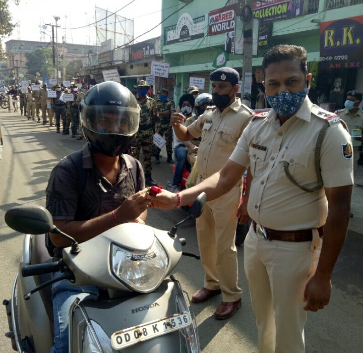 ପୋଲିସର ନିଆରା ପ୍ରୟାସ: ଗୋଲାପ ଦେଇ ସଚେତନତା