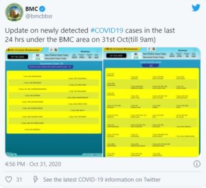 ଭୁବନେଶ୍ୱର,୩୧ା୧୦(ବ୍ୟୁରୋ): ରାଜଧାନୀ ଭୁବନେଶ୍ୱରରେ ଏହି କିଛିଦିନ ହେବ ଲଗାତର କରୋନା ଆକ୍ରାନ୍ତଙ୍କ ସଂଖ୍ୟା କମୁଛି। ଏପରିକି ଶହେ ତଳେ କରୋନା ଆକ୍ରାନ୍ତଙ୍କ ସଂଖ୍ୟା ରହୁଛି। ଶନିବାର ରାଜଧାନୀରୁ ୮୧ କରୋନା ପଜିଟିଭ୍ ଚିହ୍ନଟ ହୋଇଛନ୍ତି। ଏଥିମଧ୍ୟରୁ କ୍ୱାରାଣ୍ଟାଇନ୍ରୁ ୧୯ ଜଣ ଚିହ୍ନଟ ହୋଇଥିବା ବେଳେ ୬୨ ଜଣ ସ୍ଥାନୀୟ ସଂକ୍ରମିତ ରହିଛନ୍ତି। ସେହିପରି ୨୨୬ ଜଣ ସୁସ୍ଥ ହୋଇଛନ୍ତି। ଏନେଇ ଟୁଇଟ୍ କରି ସୂଚନା ଦେଇଛି ଭୁବନେଶ୍ୱର ମହାନଗର ନିଗମ(ବିଏମ୍ସି)। କରୋନା ଆକ୍ରାନ୍ତଙ୍କ ସଂଖ୍ୟା କମୁଥିଲେ ମଧ୍ୟ ଆମକୁ ସତର୍କ ରହିବାକୁ ପଡ଼ିବ ବୋଲି କହିଛନ୍ତି ବିଏମ୍ସି କମିଶନର।