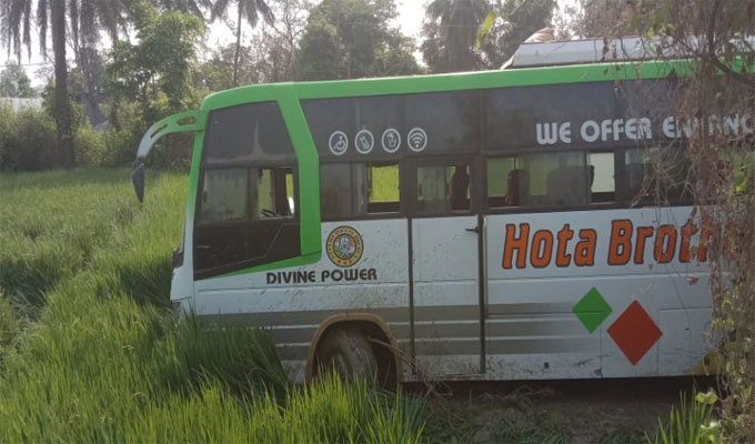 ଅତାବିରା,୧୨।୪(ଡି.ଏନ୍.ଏ.): ସୋନପୁର-ଗୋଡ଼ଭଗା ୫୪ ନମ୍ବର ରାଜ୍ୟ ରାଜପଥର ଅତାବିରା ବ୍ଳକ ଦୁଲମପୁର ସାଇ ମନ୍ଦିର ନିକଟରେ ମଙ୍ଗଳବାର ପୂର୍ବାହ୍ନରେ ଏକ ସଡ଼କ ଦୁର୍ଘଟଣା ଘଟିଛି। ସୋନପୁର ପଟରୁ ଗୋଡଭଗା ପଟକୁ ଆସୁଥିବା ଏକ ଯାତ୍ରୀବାହୀ ବସ୍ ରାସ୍ତା ପାଶର୍ବ ଧାନବିଲକୁ ପଶି ଯାଇଥିଲା। ଚକା ଫାଟି ଯିବାରୁ ଭାରସାମ୍ୟ ହରାଇ ସେଭଳି ଘଟିଥିବା କୁହାଯାଉଛି। ତେବେ ସୌଭାଗ୍ୟବସତଃ ସମସ୍ତ ଯାତ୍ରୀ ସୁରକ୍ଷିତ ଅବସ୍ଥାରେ ବସ୍ ଭିତରୁ ବାହାରିଛନ୍ତି। ଘଟଣାସ୍ଥଳକୁ ପୋଲିସ ପହଞ୍ଚି ତଦନ୍ତ କରୁଛି।