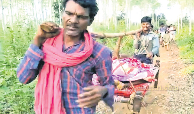 ଭବାନୀପାଟଣା,୧୫।୧୦(ଉତ୍ତମ କୁମାର ଦାଶ)ସ୍ବାଧୀନତାର ସାତ ଦଶନ୍ଧି ପରେ ମଧ୍ୟ କଳାହାଣ୍ଡି ଜିଲାର ଦୁର୍ଗମ ଅଞ୍ଚଳରେ ସବୁ ଦିନିଆ ରାସ୍ତା ଓ ପୋଲ ନ ଥିବାରୁ ବିଭିନ୍ନ ସମୟରେ ଖଟିଆରେ ବୁହାହୋଇ ଡାକ୍ତରଖାନା ଯାଉଛନ୍ତି ରୋଗୀ। ଶନିବାର ଏଭଳି ପୁଣି ଏକ ଦୃଶ୍ୟ ଦେଖିବାକୁ ମିଳିଛି କଳାହାଣ୍ଡି ଜିଲା ଥୁଆମୂଳ ରାମପୁର ବ୍ଲକ ତଲଝାପୀ ପଞ୍ଚାୟତର ଖମନପଡା ଗ୍ରାମରେ l ଖମନପଡାର ଚନ୍ଦ୍ରିକା ଗଉଡ଼ ନାମ୍ନୀ ଜଣେ ବୃଦ୍ଧା ପଡିଯାଇ ସେ ଅସୁସ୍ଥ ହୋଇ ପଡିଥିଲେ। ପରିବାର ଲୋକେ ଆମ୍ବୁଲାନ୍ସକୁ ଯୋଗାଯୋଗ କରିଥିଲେ। ହେଲେ ଖମନପଡା ଗାଁକୁ ଯିବାପାଇଁ ସବୁଦିନିଆ ରାସ୍ତା ନ ଥିବାବେଳେ ବାଟରେ ପଡୁଥିବା ବାଲିଯୋର ନଦୀରେ ପୋଲ ମଧ୍ୟ ନାହିଁ। ଫଳରେ ଆମ୍ବୁଲାନ୍ସ ଅଧାବାଟ ଦେର୍ଲା ଛକ ନିକଟରେ ଅଟକି ରହିଲା। ପରେ ପରିବାର ଓ ସମ୍ପର୍କୀୟମାନେ ଖଟିଆରେ କାନ୍ଧେଇ ଚନ୍ଦ୍ରିକାଙ୍କୁ ବାଲିଯୋର ନଦୀ ପାରକରି ପ୍ରାୟ ୫ କିଲୋମିଟର ମୁଖ୍ୟ ରାସ୍ତାକୁ ଆଣିଥିଲେ। ସେଠାରୁ ଆମ୍ବୁଲାନ୍ସ ଯୋଗେ ଚନ୍ଦ୍ରିକାଙ୍କୁ ଥୁଆମୂଳ ରାମପୁର ଗୋଷ୍ଠୀ ସ୍ବାସ୍ଥ୍ୟକେନ୍ଦ୍ରକୁ ନିଆଯାଇଥିଲା। ହେଲେ ଡାକ୍ତର ପରୀକ୍ଷା କରିବା ପରେ ତାଙ୍କୁ ଜିଲା ମୁଖ୍ୟ ଚିକିତ୍ସାଳୟକୁ ସ୍ଥାନାନ୍ତର ପାଇଁ ପରାମର୍ଶ ଦେଇଥିଲେ। ଚନ୍ଦ୍ରିକାଙ୍କୁ ଭବାନୀପାଟଣାସ୍ଥିତ ଜିଲା ମୁଖ୍ୟ ଚିକିତ୍ସାଳୟକୁ ନିଆଯାଇଥିଲା।