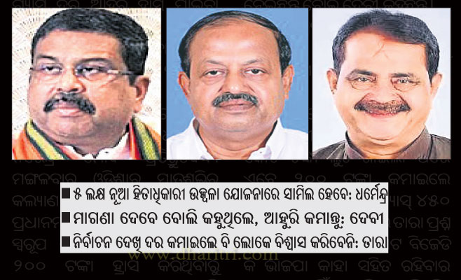 ଭୁବନେଶ୍ୱର, ୩୧।୮(ସୁନିତ୍‌ ମିଶ୍ର): ‘ପ୍ରଧାନମନ୍ତ୍ରୀ ଉଜ୍ଜ୍ୱଳା ଯୋଜନା’ରେ ଅତିରିକ୍ତ ୭୫ ଲକ୍ଷ ମାଆ ଭଉଣୀଙ୍କୁ ଯେଡ଼ାଯିବା ନେଇ କ୍ୟାବିନେଟ ମଞ୍ଜୁରୀ ମିଳିସାରିଛି। ଏହା ଫଳରେ ଓଡ଼ିଶାର ଆନୁମାନିକ ପ୍ରାୟ ୫ ଲକ୍ଷ ନୂଆ ହିତାଧିକାରୀଙ୍କୁ ଉଜ୍ଜ୍ୱଳା ଯୋଜନାରେ ସାମିଲ କରାଯିବ। ଏହି ନିଷ୍ପତ୍ତି ଦ୍ୱାରା ପରିବାରରେ ଖୁସି ଆସିବ ଏବଂ ନାଗରିକଙ୍କ ଜୀବନ ଆହୁରି ସହଜ ହେବ ବୋଲି କେନ୍ଦ୍ରମନ୍ତ୍ରୀ ଧର୍ମେନ୍ଦ୍ର ପ୍ରଧାନ କହିଛନ୍ତି। ତେବେ ଗ୍ୟାସ୍‌ ଦର ୨୦୦ ଟଙ୍କା ହ୍ରାସ ହେବା ନେଇ ବିଜେଡି ଓ କଂଗ୍ରେସ କେନ୍ଦ୍ର ସରକାରଙ୍କୁ ଟାର୍ଗେଟ କରିଛନ୍ତି। ଗ୍ୟାସ୍‌ ଦର ଆହୁରି ହ୍ରାସ ପାଇବା ଦରକାର ବୋଲି ବିଜେଡି କହିଥିବା ବେଳେ ନିର୍ବାଚନ ଆସିବାରୁ ଏହା ରାଜନୀତି ବୋଲି କଂଗ୍ରେସ କହିଛି।