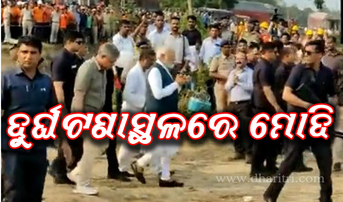 ନୂଆଦିଲ୍ଲୀ/ବାହାନଗା,୩ା୬(ଡି.ଏନ୍.ଏ.): ପ୍ରଧାନମନ୍ତ୍ରୀ ନରେନ୍ଦ୍ର ମୋଦି ବାଲେଶ୍ବର ଜିଲା ବାହାନଗା ନିକଟରେ ଶୁକ୍ରବାର ଘଟିଥିବା ଟ୍ରେନ୍ ଦୁର୍ଘଟଣାସ୍ଥଳରେ ଶନିବାର ଅପରାହ୍ନରେ ଆସି ପହଞ୍ଚିଛନ୍ତି। ପ୍ରଧାନମନ୍ତ୍ରୀ ନୂଆଦିଲ୍ଲୀରୁ ସ୍ବତନ୍ତ୍ର ବିମାନରେ ପଶ୍ଚିମବଙ୍ଗର ପଶ୍ଚିମ ମେଦିନିପୁର ଜିଲା କଲାଇକୁଣ୍ଡା ଏୟାର ଫୋର୍ସ ଷ୍ଟେଶନରେ ପହଞ୍ଚିଥିଲେ। ସେଠାରୁ ସେ ଏକ ବାୟୁସେନାର ହେଲିକପ୍ଟର ଯୋଗେ ବାହାନଗାରେ ପହଞ୍ଚି ଦୁର୍ଘଟଣାସ୍ଥଳର ସ୍ଥିତି ଅନୁଧ୍ୟାନ କରୁଛନ୍ତି।