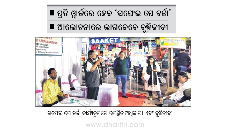 ଢେଙ୍କାନାଳ ଅଫିସ, ୨।୧: ଢେଙ୍କାନାଳ ସହରର ପୂଜା ପ୍ରତିଷ୍ଠାନଗୁଡ଼ିକୁ ସ୍ବଚ୍ଛତା କାର୍ଯ୍ୟକ୍ରମରେ ସାମିଲ କରାଯିବ। ସହର ସୌନ୍ଦର୍ଯ୍ୟକରଣରେ ସେମାନେ ପ୍ରମୁଖ ଭୂମିକା ଗ୍ରହଣ କରିବେ। ପୌରସଂସ୍ଥା ପକ୍ଷରୁ ଲକ୍ଷ୍ମୀବଜାର ଇନ୍ଦିରା ଗାନ୍ଧୀ ସୁପରମାର୍କେଟ୍ କମ୍ପ୍ଲେକ୍ସ ପ୍ରାଙ୍ଗଣରେ ଆୟୋଜିତ ‘ସଫେଇ ପେ ଚର୍ଚ୍ଚା’ କାର୍ଯ୍ୟକ୍ରମରେ ଏହି ପ୍ରସ୍ତାବ ଗୃହୀତ ହୋଇଛି। ଜିଲାପାଳ ସରୋଜ କୁମାର ସେଠୀ ଯୋଗଦେଇ ସହର ସୌନ୍ଦର୍ଯ୍ୟବୃଦ୍ଧି ଉପରେ ସମସ୍ତଙ୍କ ସହଯୋଗ ଲୋଡ଼ିଥିଲେ।
