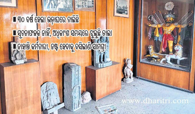 ପୁରୀ ଅଫିସ,୧୧।୨: ସଂସ୍କୃତି ଓ ଐତିହ୍ୟର ବାର୍ତ୍ତାବହ କୁହାଯାଉଥିବା ପୁରୀ ସଂଗ୍ରହାଳୟ ଏବେ ଅବହେଳିତ ହୋଇପଡ଼ିଛି। ଉଦ୍ଘାଟନ ଦିନଠାରୁ ଅର୍ଥାତ ଦୀର୍ଘ ୩୦ବର୍ଷ ହେଲା ସଂଗ୍ରହାଳୟ ଭଡ଼ାଘରେ ଚାଲିଛି। ଏଠାରେ ଅନେକ ଦୁର୍ମୂଲ୍ୟ କଳାକୃତି, ପଥର ମୂର୍ତ୍ତି, ସୋଲ କାରୁକାର୍ଯ୍ୟ ଓ ବିରଳ ଫଟୋ ସାଇତା ରହିଛି। ତେବେ ଉପଯୁକ୍ତ ରକ୍ଷଣାବେକ୍ଷଣ ଅଭାବରୁ ଏସବୁରେ ଧୂଳିର ମୋଟା ଆସ୍ତରଣ ବସିଗଲାଣି। କେତେକ ସାମଗ୍ରୀ ନଷ୍ଟ ହେଇଗଲାଣି। କେହି କର୍ମଚାରୀ ନ ଥିବାବେଳେ ଅଧିକାଂଶ ସମୟରେ ସଂଗ୍ରହାଳୟରେ ତାଲା ଝୁଲୁଛି। ପର୍ଯ୍ୟଟନ ସହର ପୁରୀରେ ଥିବା ଏହି ସଂଗ୍ରହାଳୟ ଏବେ ନିଜ ଅସ୍ତିତ୍ୱ ଖୋଜିବା ସହ ପୁନରୁଦ୍ଧାର ଚାହଁୁଛି। ୧୯୯୨ ଜୁଲାଇ ୨୭ରେ ତତ୍କାଳୀନ ସଂସ୍କୃତି ମନ୍ତ୍ରୀ ଶରତ କୁମାର କର ପୁରୀ ସଂଗ୍ରହାଳୟ ଏବଂ ଜିଲା ପାଠାଗାରକୁ ଉଦ୍ଘାଟନ କରିଥିଲେ। ପ୍ରଥମେ ଦଇତାପଡ଼ା ସାହିର ଏକ ଭଡ଼ାଘରେ ସଂଗ୍ରହାଳୟ ଖୋଲାଯାଇଥିଲା। ସମ୍ପ୍ରତି ଜିଲା ସ୍କୁଲ ପାଖ ଏକ ଭଡ଼ା ଘରେ ଏହା କାର୍ଯ୍ୟକ୍ଷମ ହୋଇଆସୁଛି। ଏଠାରେ ମାର୍କଣ୍ଡ ଭୈରବ, ଗଣେଶ୍ୱର ମନ୍ଦିର, ନନ୍ଦିଘୋଷ ରଥର କାରୁକାର୍ଯ୍ୟ, ଶ୍ରୀମନ୍ଦିର କଳାକୃତିର ଫଟୋ, ଗରୁଡ଼ଙ୍କ ଅବିକଳ ମୂର୍ତ୍ତି, କୋଣାର୍କ ମନ୍ଦିର ଫଟୋ, ଶ୍ରୀକ୍ଷେତ୍ର ସାହିଯାତର ନାଗା ଓ ଅନେକ ପଥର ନିର୍ମିତ କଳାକୃତି ରହିଛି। ସେହିଭଳି ସୋଲ ନିର୍ମିତ ଚତୁର୍ଦ୍ଧା ମୂର୍ତ୍ତି ମଧ୍ୟ ରଖାଯାଇଛି। ତେବେ ଉପଯୁକ୍ତ ଭାବେ ରକ୍ଷଣାବେକ୍ଷଣ ହେଉ ନ ଥିବାରୁ ଏସବୁରେ ଧୂଳି ବସିବା ସହ ଅଳନ୍ଧୁ ଲାଗିଗଲାଣି। କିଛିବର୍ଷ ତଳେ ସଂଗ୍ରହାଳୟ ଦାୟିତ୍ୱରେ ଦୁଇଜଣ କର୍ମଚାରୀ ଥିଲେ। ସେମାନେ ଅବସର ନେବା ପରଠୁ ଏପର୍ଯ୍ୟନ୍ତ ଦାୟିତ୍ୱରେ କାହାକୁ ରଖାଯାଇନାହିଁ। ପାଠାଗାର ଦାୟିତ୍ୱରେ ଥିବା କର୍ମଚାରୀ କାଁ ଭାଁ ଆସି ସଂଗ୍ରହାଳୟ ଖୋଲୁଛନ୍ତି। ଏଠାକୁ ପର୍ଯ୍ୟଟକ ଆସୁନାହାନ୍ତି। ସବୁଠାରୁ ଆଶ୍ଚର୍ଯ୍ୟର କଥା, ସଂଗ୍ରହାଳୟ ବାହାରେ ସୂଚନାଫଳକଟିଏ ମଧ୍ୟ ନାହିଁ। କେହି ବ୍ୟକ୍ତି ଉକ୍ତ ସଂଗ୍ରହାଳୟ ଦେଖିବାକୁ ଚାହିଁଲେ ସହଜରେ ଖୋଜିି ପାଇପାରିବେ ନାହିଁ। ଅନ୍ୟପକ୍ଷରେ ରାଜ୍ୟ ସରକାରଙ୍କ ଉଦ୍ୟମରେ ଜିଲା ସଂସ୍କୃତି ଭବନ ପରିସରରେ ଆର୍ଟ ଗ୍ୟାଲେରୀ ପ୍ରତିଷ୍ଠା ହୋଇଛି। ଜିଲା ପାଠାଗାର ମଧ୍ୟ ଖୁବ୍ଶୀଘ୍ର ସଂସ୍କୃତି ଭବନକୁ ଉଠି ଆସିବ। ମାତ୍ର ସଂଗ୍ରହାଳୟ ପୁନରୁଦ୍ଧାର ଓ ରକ୍ଷଣାବେକ୍ଷଣ ସମ୍ପର୍କରେ ପ୍ରଶାସନ ଚିନ୍ତା କରୁନାହିଁ। ଅଭିନନ୍ଦନିକା ଅନୁଷ୍ଠାନର ପ୍ରତିଷ୍ଠାତା ଶ୍ୟାମପ୍ରକାଶ ସେନାପତି କହିଛନ୍ତି, ସଂଗ୍ରହାଳୟ ପୁନରୁଦ୍ଧାର ପାଇଁ ପୁରୀର ସାଂସ୍କୃତିକ ସଙ୍ଗଠନଗୁଡ଼ିକ ଏକାଠି ହୋଇ ଜିଲା ସଂସ୍କୃତି ଅଧିକାରୀଙ୍କ ନିକଟରେ ଦାବି ଉପସ୍ଥାପିତ କରିଛୁ। ମାତ୍ର କୌଣସି ପଦକ୍ଷେପ ନିଆଯାଇନାହିଁ। ପୁରୀକୁ ଆସୁଥିବା ଶ୍ରଦ୍ଧାଳୁ ଓ ପର୍ଯ୍ୟଟକ ସଂଗ୍ରହାଳୟ ସମ୍ପର୍କରେ ଜାଣି ପାରୁନାହାନ୍ତି। ତୁରନ୍ତ ସରକାରୀ କୋଠାରେ ସଂଗ୍ରହାଳୟ କାର୍ଯ୍ୟକ୍ଷମ କରାଯିବା ସହ ପ୍ରଚାର ପ୍ରସାର ନିମନ୍ତେ ସେନାପତି ଦାବି କରିଛନ୍ତି। ସେହିପରି ସାମନ୍ତ ଚନ୍ଦ୍ରଶେଖର ସ୍ବୟଂଶାସିତ ମହାବିଦ୍ୟାଳୟର ଓଡ଼ିଆ ଭାଷା ଓ ସାହିତ୍ୟ ବିଭାଗ ମୁଖ୍ୟ ଡ. ଦିଲୀପ କୁମାର ସ୍ବାଇଁ କହିଛନ୍ତି, ଐତିହ୍ୟ ନଗରୀ ପୁରୀ ଆଧ୍ୟାତ୍ମିକ ଓ ସାଂସ୍କୃତିକ ଦୃଷ୍ଟିକୋଣରୁ ଆନ୍ତର୍ଜାତିକ ସ୍ତରରେ ପରିଚୟ ବହନ 