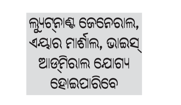 ନୂଆଦିଲ୍ଲୀ,୮।୬: ଦେଶର ପରବର୍ତ୍ତୀ ଚିଫ୍ ଅଫ୍ ଡିଫେନ୍ସ ଷ୍ଟାଫ୍ (ସିଡିଏସ୍) ନିଯୁକ୍ତି ଲାଗି କେନ୍ଦ୍ର ସରକାର ପ୍ରତିରକ୍ଷା ନିୟମାବଳୀରେ ସଂଶୋଧନ କରିଛନ୍ତି। ସରକାରଙ୍କ ପକ୍ଷରୁ ପ୍ରକାଶିତ ବିଜ୍ଞପ୍ତି ଅନୁଯାୟୀ ୬୨ ବର୍ଷରୁ କମ୍ କାର୍ଯ୍ୟରତ କିମ୍ବା ଅବସରପ୍ରାପ୍ତ ଲ୍ୟୁଟ୍ନାଣ୍ଟ ଜେନେରାଲ, ଏୟାର ମାର୍ଶାଲ ଏବଂ ଭାଇସ ଆଡମିରାଲ ଏହି ପଦବୀ ଲାଗି ଯୋଗ୍ୟ ବିବେଚିତ ହୋଇପାରିବେ। ସଂଶୋଧିତ ନିୟମ ଅନୁଯାୟୀ ସ୍ଥଳସେନା, ବାୟୁସେନା ଓ ନୌସେନାର କାର୍ଯ୍ୟରତ ମୁଖ୍ୟମାନଙ୍କ ସମେତ ଉପରୋକ୍ତ ଅଧିକାରୀମାନଙ୍କୁ ସୈନ୍ୟବାହିନୀର ସର୍ବୋଚ୍ଚ ପଦବୀରେ ନିଯୁକ୍ତି ପାଇଁ ବିଚାରକୁ ନିଆଯାଇପାରିବ।