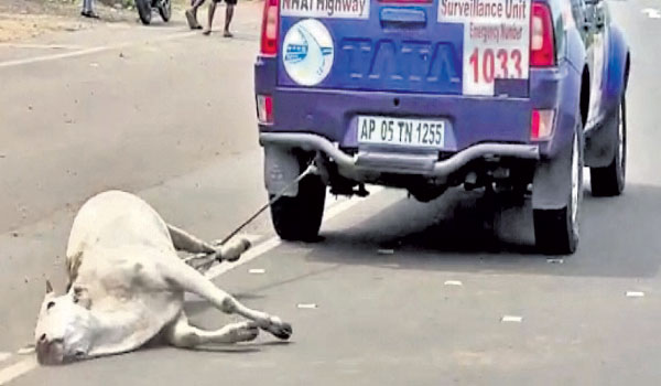 ମୃତ ଗାଈକୁ ଘୋଷାଡ଼ିଲା ଏନ୍‌ଏଚ୍‌ଏଆଇ ଗାଡ଼ି