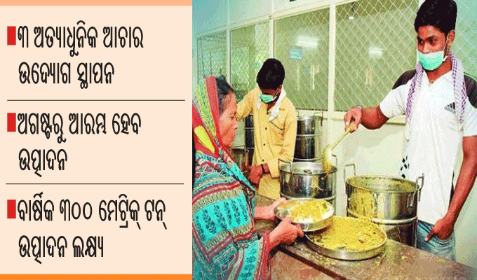 ଆଚାର ପ୍ରସ୍ତୁତିର ବିବିଧ କୌଶଳ ଓ ଗୁଣବତ୍ତା ସୁନିଶ୍ଚିତ କରିବା ନିମନ୍ତେ ମିଶନ ଶକ୍ତି ବିଭାଗର ଉଦ୍ୟମରେ ଉକ୍ତ ୩ ଏସ୍ଏଚ୍ଜି ସହ ମହୀଶୂରସ୍ଥିତ କେନ୍ଦ୍ରୀୟ ଖାଦ୍ୟ ବୈଷୟିକ ଗବେଷଣା ପ୍ରତିଷ୍ଠାନ (ସିଏଫ୍ଟିଆର୍ଆଇ)ର ବୁଝାମଣାପତ୍ର ସ୍ବାକ୍ଷର ହୋଇଛି। ଆଚାର ପ୍ରସ୍ତୁତି ପାଇଁ ଆବଶ୍ୟକ ଜ୍ଞାନକୌଶଳ ଏହି ପ୍ରତିଷ୍ଠାନ ଯୋଗାଇ ଦେବ। ପ୍ରତି ଉଦ୍ୟୋଗ ପାଇଁ ଜଣେ ଲେଖାଏ ଖାଦ୍ୟ ସୁରକ୍ଷା ସୁପରଭାଇଜରଙ୍କୁ ନିୟୋଜିତ କରାଯାଇଛି। ଆଚାର ପ୍ରସ୍ତୁତି ପାଇଁ ଆବଶ୍ୟକ ହେଉଥିବା କଞ୍ଚାମାଲ ଯଥା-ଆମ୍ବ, ଲେମ୍ବୁ, ଗାଜର, ଅଦା, କଞ୍ଚାଲଙ୍କା ଏବଂ ଅନ୍ୟାନ୍ୟ ସାମଗ୍ରୀକୁ ଏସ୍ଏଚ୍ଜିମାନେ ସଂଗ୍ରହ କରି ମହଜୁଦ ରଖିଛନ୍ତି। ଇତି ମଧ୍ୟରେ ସିଏଫ୍ଟିଆର୍ଆଇଠାରୁ ଆବଶ୍ୟକ ଯନ୍ତ୍ରପାତି ଓ ଅନ୍ୟାନ୍ୟ ଉପକରଣ ଅଣାଯାଇସାରିଛି। ୟୁନିଟ୍ଗୁଡ଼ିକ ଅଗଷ୍ଟ ୨୦୨୧ରେ ଉତ୍ପାଦନ ଆରମ୍ଭ କରିବେ। ପ୍ରତି ୧ କେଜି ଆଚାରର ଉତ୍ପାଦନ ଖର୍ଚ୍ଚ ୪୫ ଟଙ୍କା ହୋଇଥିବାବେଳେ କେଜି ପିଛା ୫୧ ଟଙ୍କାରେ ବିକ୍ରି କରିବାକୁ ସ୍ଥିର କରାଯାଇଛି। ଉନ୍ନତ ଜ୍ଞାନକୌଶଳ ପ୍ରୟୋଗରେ ଉତ୍ପାଦନ ବୃଦ୍ଧି ପାଇଲେ ଖୋଲାବଜାରରେ ମଧ୍ୟ ଆଚାର ବିକ୍ରି କରାଯିବ। ଏହାଦ୍ୱାରା ଏସ୍ଏଚ୍ଜିଙ୍କ ଆୟ ବୃଦ୍ଧି ପାଇବ। ଏହି ବ୍ୟବସାୟିକ ଉଦ୍ୟୋଗକୁ ସଫଳତାର ସହ କାର୍ଯ୍ୟକାରୀ କରିବା ନିମନ୍ତେ ଗୃହନିର୍ମାଣ ଓ ନଗର ଉନ୍ନୟନ ବିଭାଗ ତରଫରୁ ଏକ ବୈଷୟିକ ସହାୟତା ବ୍ୟବସ୍ଥାର ବିକାଶ କରାଯାଇଥିବା ବିଭାଗ ପକ୍ଷରୁ କୁହାଯାଇଛି।