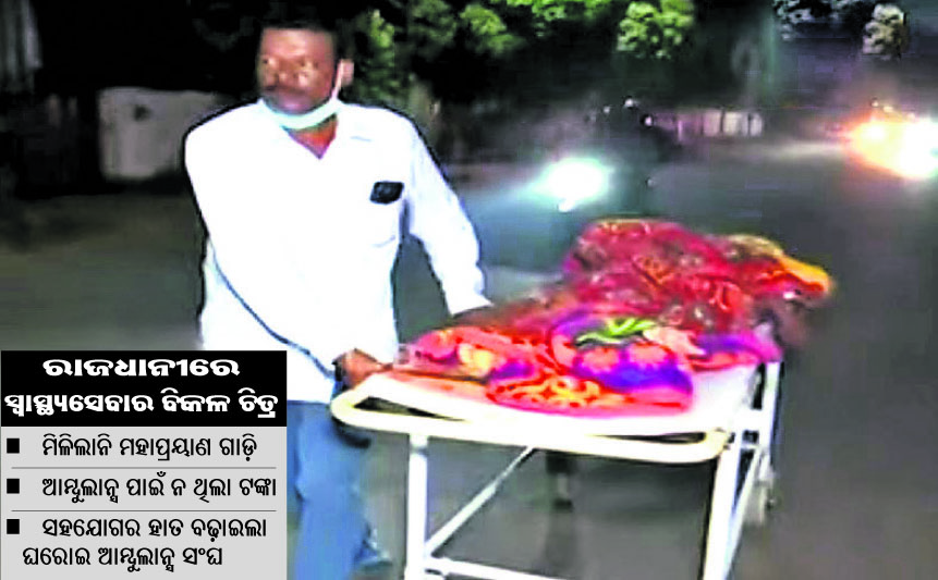 ଭୁବନେଶ୍ୱର,୨୨।୧୧(ବ୍ୟୁରୋ): ରାଜଧାନୀରେ ଦାନ ମାଝି ଭଳି ଅଭାବନୀୟ ଘଟଣାର ପୁନରାବୃତ୍ତି ହୋଇଛି। ମା’ଙ୍କ ମୃତଦେହ ଘରକୁ ନେବା ପାଇଁ ମିଳିଲାନି ମହାପ୍ରୟାଣ ଗାଡ଼ି। ଘରୋଇ ଆମ୍ବୁଲାନ୍ସରେ ନେବାକୁ ପାଖରେ ନ ଥିଲା ଟଙ୍କା। ଶେଷରେ ମୃତଦେହକୁ ଷ୍ଟ୍ରେଚର୍ରେ ଟାଣି ଟାଣି ନେଇଥିଲେ ପୁଅ ମାନସ ବାହୁବଳେନ୍ଦ୍ର। ସୋମବାର ରାତିରେ କ୍ୟାପିଟାଲ ହସ୍ପିଟାଲ ନିକଟରେ ଏହି ହୃଦୟ ବିଦାରକ ଚିତ୍ର ଦେଖିବାକୁ ମିଳିଥିଲା।