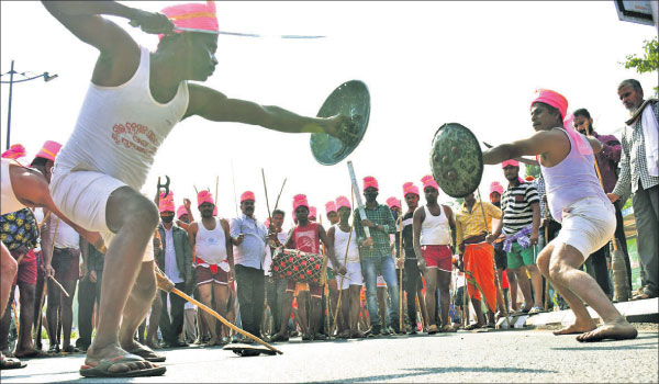 ଭୁବନେଶ୍ୱର, (ବ୍ୟୁରୋ)/ଖୋର୍ଦ୍ଧା ଅଫିସ, ୧୮ା୧୨: ୧୮୧୭ ମସିହା ପାଇକ ବିଦ୍ରୋହକୁ ଭାରତର ପ୍ରଥମ ସ୍ବାଧୀନତା ସଂଗ୍ରାମ ମାନ୍ୟତା ପ୍ରଦାନ ଓ ପାଇକ ସ୍ମାରକୀ ନିର୍ମାଣ ଦାବିରେ ରାଜରାସ୍ତାକୁ ଓହ୍ଲାଇଛି ଓଡ଼ିଶା ବୀର ମହାସଂଘ। ରାଜ୍ୟର ପାଇକଙ୍କୁ ଏକାଠି କରିବା ସହ ଆଉଏକ ସଂଗ୍ରାମ ପାଇଁ ବୀର ଧ୍ୱନି ବଜାଇଛି। ଏଥିପାଇଁ ଶୁକ୍ରବାର ଖୋର୍ଦ୍ଧାର ବରୁଣେଇ ପାଦଦେଶ ଓ ରାଜଧାନୀ ଭୁବନେଶ୍ୱରଠାରେ ପାଇକ ମେଳି ହୋଇଥିଲା। ଖୋର୍ଦ୍ଧା, ଗଞ୍ଜାମ, ପୁରୀ, କନ୍ଧମାଳ, ଅନୁଗୋଳ, ଢେଙ୍କାନାଳ ଆଦି ଅଞ୍ଚଳରୁ ୩ହଜାରରୁ ଊର୍ଦ୍ଧ୍ୱ ପାଇକ ଆଖଡ଼ା ଦଳ, ଦଳେଇ, ଦଳବେହେରା, ପାଇକ ସର୍ଦ୍ଦାର, ଐତିହାସିକ ଓ ସାମରିକ ପରମ୍ପରାର ଗବେଷକ ସାମିଲ ହୋଇଥିଲେ। ମା’ ବରୁଣେଇଙ୍କୁ ପୂଜାର୍ଚ୍ଚନା କରି ଶୋଭାଯାତ୍ରାରେ ଖୋର୍ଦ୍ଧାଗଡ଼ରୁ ବୀର ମାଟି ସଂଗ୍ରହ କରି ପଞ୍ଚପାଇକ ମହାରଥୀଙ୍କୁ ପୁଷ୍ପମାଲ୍ୟ ପ୍ରଦାନ କରିବା ପରେ ସେମାନେ ଖୋର୍ଦ୍ଧା ସହର ପରିକ୍ରମା କରିଥିଲେ। ପରେ ମଶାଲ ଯାତ୍ରା ଭୁବନେଶ୍ୱର ଅଭିମୁଖେ ବାହାରିଥିଲା। ପାଇକ ବୀରଙ୍କ ବୀରତ୍ୱର ଗାଥା ଉଜ୍ଜୀବିତ କରି ରଖିଥିବା ପାଇକ ଆଖଡ଼ା ଦେଖିବାକୁ ମିଳିଥିଲା। ହାତରେ ଢାଲ, ଖଣ୍ଡା, ତଲଓ୍ବାର, ସାଜ, ବାଡି ଧରି ବୀର ବାଦ୍ୟର ତାଳେ ତାଳେ ସମରକଳା ପ୍ରଦର୍ଶନ କରିଥିଲେ। ରାଜ୍ୟର ବିଭିନ୍ନ କୋଣ ଅନୁକୋଣରୁ ଆସିଥିବା ପାଇକବାହିନୀ ଭୁବନେଶ୍ୱରର ମାଷ୍ଟରକ୍ୟାଣ୍ଟିନ୍ ଛକରୁ ଯୁଦ୍ଧ ବାଦ୍ୟ ତାଳେ ତାଳେ ପାଇକ ଆଖଡ଼ା ପ୍ରଦର୍ଶନ କରି ବିରାଟ ଶୋଭାଯାତ୍ରାରେ ରାମ ମନ୍ଦିର ଛକଦେଇ ଏକାମ୍ର ହାଟ ପର୍ଯ୍ୟନ୍ତ ଯାଇଥିଲେ। ସେଠାରେ ମହାସଂଘ ସଭାପତି ଡ. ପ୍ରକାଶ ଶ୍ରୀଚନ୍ଦନଙ୍କ ଅଧ୍ୟକ୍ଷତାରେ ଏକ ପ୍ରତିବାଦସଭା ଅନୁଷ୍ଠିତ ହୋଇଥିଲା। ମହାସଂଘ ସାଧାରଣ ସମ୍ପାଦକ ତଥା ପୂର୍ବତନ ବିଧାୟକ ଡ. ଦିଲ୍ଲୀପ ଶ୍ରୀଚନ୍ଦନ କହିଲେ, ଆମର ନ୍ୟାଯ୍ୟଦାବି ପୂରଣ ପାଇଁ ଆଜି ଆଉଏକ ପାଇକ ସଂଗ୍ରାମର ବିଗୁଲ୍ ବାଜିଲା। ଯଦି ପାଇକ ବିଦ୍ରୋହକୁ କେନ୍ଦ୍ର ସରକାର ପ୍ରଥମ ସ୍ବାଧୀନତା ସଂଗ୍ରାମର ମାନ୍ୟତା ପ୍ରଦାନ ନ ଦିଅନ୍ତି, ଏହାପରେ ଦିଲ୍ଲୀ ଯାଇ ପାଇକ ବାହିନୀ ବିପ୍ଳବ କରିବ। ଏଥିସହିତ ପ୍ରଧାନମନ୍ତ୍ରୀ, ରାଷ୍ଟ୍ରପତି, ସଂସ୍କୃତିମନ୍ତ୍ରୀ ପ୍ରମୁଖଙ୍କୁ ଦାବିପତ୍ର ପ୍ରଦାନ କରିବେ। ଯେପର୍ଯ୍ୟନ୍ତ ଦାବି ହାସଲ ନ ହୋଇଛି, ସେପର୍ଯ୍ୟନ୍ତ ସଂଗ୍ରାମ ଚାଲୁ ରହିବ ବୋଲି ଡ. ଶ୍ରୀଚନ୍ଦନ କହିଛନ୍ତି। ସେହିପରି ମୁଖ୍ୟମନ୍ତ୍ରୀ, ପୂର୍ବତନ ରାଷ୍ଟ୍ରପତି ପ୍ରଣବ ମୁଖାର୍ଜୀ ଖୋର୍ଦ୍ଧାର ବରୁଣେଇଠାରେ ଶିଳାନ୍ୟାସ କରିଥିବା ସ୍ଥାନରେ ପାଇକ ସ୍ମୃତିସ୍ତମ୍ଭ ନିର୍ମାଣ ପାଇଁ ଯଥାଶୀଘ୍ର ଜାଗା ଯୋଗାଇ ନ ଦେଲେ ବିପ୍ଳବର ବହ୍ନି ଅନୁରୂପ ଭାବେ ଚାଲୁ ରହିବ ବୋଲି ସେ ଚେତାବନୀ ଦେଇଛନ୍ତି। ଜଟଣୀ ବିଧାୟକ ସୁରେଶ କୁମାର ରାଉତରାୟ, ଚିଲିକା ପୂର୍ବତନ ବିଧାୟକ ଡ. ଦେବେନ୍ଦ୍ର ମାନସିଂ, କାର୍ଯ୍ୟକ୍ରମର ମୁଖ୍ୟ ସଂଯୋଜକ ନରେନ୍ଦ୍ର ପୃଷ୍ଟି, ସାମାଜିକକର୍ମୀ ଗଣେଶ ସାମନ୍ତରାୟ, ଐତିହାସିକ ତଥା ବ୍ରହ୍ମପୁର ବିଶ୍ୱବିଦ୍ୟାଳୟର ପୂର୍ବତନ ରେଜିଷ୍ଟ୍ରାର ଡ. ନାରାୟଣ ରାଓ, ଗବେଷକ ଡ. ଗୋପାଳ କୃଷ୍ଣ ଦାସ, ଆଇନଜୀବୀ ଶିଶିର ପରିଡା, ଡ.ବୃନ୍ଦାବନ ପଣ୍ଡା, ଇତିଶ୍ରୀ ସାହୁ ପ୍ରମୁଖ ଯୋଗଦେଇ ଦାବି ପୂରଣ ନ ହେବା ପର୍ଯ୍ୟନ୍ତ ବିପ୍ଳବ ଚାଲୁ ରହିବ ବୋଲି ଚେତାବନୀ ଦେଇଛନ୍ତି।