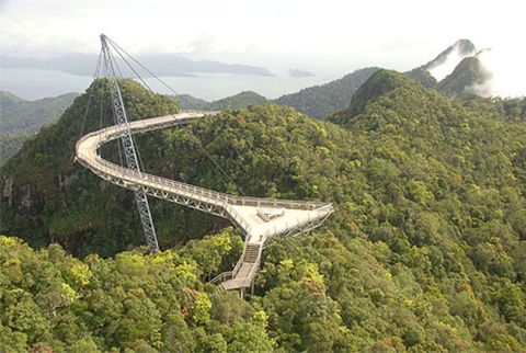 ଲାଙ୍ଗ୍କାଓ୍ବି ସ୍କାଏ ବ୍ରିଜ୍ : ଏହି ବକ୍ରାକୃତି ପଦଚାରଣ ସେତୁ ସମୁଦ୍ର ପତନଠାରୁ ୨୦୦୦ ଫୁଟ୍ ଉଚ୍ଚରେ ନିର୍ମିତ। ଏହା ମାଲେସିଆର ମାଟ୍ ସିକାଙ୍ଗ ପର୍ବତ ମଧ୍ୟରେ ରହିଛି । ଏହି ବ୍ରିଜ୍ ଉପରେ ଚାଲିବା ପାଇଁ ଆସୁଥିବା ପର୍ଯ୍ୟଟକମାନଙ୍କୁ ଏଥିପାଇଁ କେବୁଲ୍ କାର୍ ଯୋଗେ ଉପରକୁ ଆସିବାକୁ ପଡିଥାଏ । ଲାଙ୍ଗକାଓ୍ବି ସେତୁ ବିଶ୍ୱର ସର୍ବୋଚ୍ଚ ଝୁଲନ୍ତା ସେତୁ ମଧ୍ୟରୁ ଅନ୍ୟତମ ା ଏହାର ଡେକ୍ର ଓସାର ୯ଫୁଟ୍ରୁ ସାମାନ୍ୟ କମ୍ ଏବଂ ଏହା ବକ୍ରାକାର ଗତିପଥ ୯୯ଟି ଦ୍ୱୀପ ବିଶିଷ୍ଟ ଦ୍ୱୀପପୁଞ୍ଜର ସୁଦୀର୍ଘ ଦୃଶ୍ୟ ଉପଭୋଗ କରିବାର ସୁଯୋଗ ପ୍ରଦାନ କରିଥାଏ । ଏହାର ପ୍ରତି ବକ୍ର-ଶୀର୍ଷରେ ତ୍ରିଭୁଜାକାର ପର୍ଯ୍ୟବେକ୍ଷଣ ସ୍ଥଳୀ ରହିଛି ା