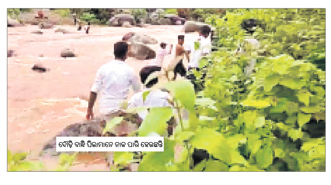 ପାତ୍ରପୁର,୧୦।୭(ଡି.ଏନ.ଏ): ପାତ୍ରପୁର ବ୍ଲକ ବୁରାତାଲ ପଞ୍ଚାୟତରେ ବର୍ଷା ପାଣି ଯୋଗୁଁ ଜାମୁଗଣ୍ଡ ନାଳ ଭର୍ତ୍ତି ହୋଇଯିବାରୁ ଦଉଡ଼ି ବାନ୍ଧି ଛାତ୍ରୀଛାତ୍ର ଘରକୁ ଆସିଛନ୍ତି। ବୁରାତାଲ ପଞ୍ଚାୟତ କମଳାଖତ ନୂଆଁସାହି ତଥା ସେହି ଅଞ୍ଚଳରେ ଥିବା ପ୍ରାୟ ଦଶ ଖଣ୍ଡ ଗ୍ରାମକୁ ଯିବା ପାଇଁ ହେଲେ ଜାମୁଗଣ୍ଡ ନାଳ ପାର କରିବାକୁ ପଡିଥାଏ। ଶୁକ୍ରବାର ଉପର ମୁଣ୍ଡରେ ପ୍ରବଳ ବର୍ଷା ହେବା ଫଳରେ ନାଳରେ ପାଣି ଆସି ଯାଇଥିଲା। ଫଳରେ ଉପର ମୁଣ୍ଡରେ ଥିବା ଗ୍ରାମର ପିଲାମାନେ ବିଦ୍ୟାଳୟକୁ ଯାଇ ଗ୍ରାମକୁ ଫେରିବା ବେଳେ ନାଳର ବର୍ଷା ପାଣିକୁ ଦେଖି ଭୟଭିତ ହୋଇପଡ଼ିଥିଲେ। କମଳାଖତ ନୂଆଁସାହିର ଗୋବିନ୍ଦ ମଣ୍ଡଳ, ଅନନ୍ତ ଭୁୟାଁ, ପିତାମ୍ବର ମଣ୍ଡଳ, ବାଙ୍କିଆ ଭୁୟାଁ ଓ ନନ୍ଦ ରଇତ ନାଳ ଅତିକ୍ରମ ହୋଇ ପାଠ ପଢିବା ପାଇଁ ପୁରିଆସାହି ଯାଇଥିଲେ। ଫେରିବା ସମୟରେ ନାଳରେ ପାଣି ଆସିଯାଇଥିଲା। ନାଳ ସେ ପଟେ ରହି ପିଲା ଡାକ ଦେବାରୁ ଗ୍ରାମବାସୀ ଆସି ଦଉଡି ବାନ୍ଧି ପିଲାମାନଙ୍କୁ ନାଳ ପାର କରିଥିଲେ। ପ୍ରତ୍ୟେକ ଦିନ ପିଲା ମାନେ ନାଳ ପାର ହୋଇ ପାଠ ପଢିବାକୁ ଯାଉଥିବା ବେଳେ ବର୍ଷା ଦିନ ଆସିଲେ ସେମାନେ ନାନା ପ୍ରକାରର ସମସ୍ୟାକୁ ସାମ୍ନା କରୁଥିବା