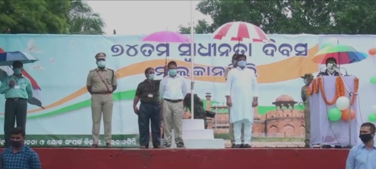 ମାଲକାନଗିରି,୧୫ା୮: ମାଲକାନଗିରି ଜିଲା ସଦରମହକୁମା ଡିଏନ୍କେ ଖେଳପଡ଼ିଆରେ ଜିଲାସ୍ତରୀୟ ୭୪ତମ ସ୍ବାଧୀନତା ଦିବସ ପାଳିତ ହୋଇଯାଇଛି। ଏହି ଉପଲକ୍ଷେ ପଞ୍ଚାୟତିରାଜ, ପାନୀୟ ଜଳ, ନଗରଉନ୍ନୟନ ମନ୍ତ୍ରୀ ପ୍ରତାପ ଜେନା ମୁଖ୍ୟ ଅତିଥି ଭାବେ ଯୋଗ ଦେଇ ଜାତୀୟ ପତାକା ଉତ୍ତୋଳନ କରିଥିଲେ। ବର୍ତ୍ତମାନ କରୋନା ମହାମାରୀ ବ୍ୟାପିଥିବାରୁ କେବଳ ୧୦ ଜଣ ଅଧିକାରୀଙ୍କ ଉପସ୍ଥିତିରେ ଏହି ସ୍ବାଧୀନତା ଦିବସ ପାଳନ କରାଯାଇଛି। ଆଜି ସକାଳେ ୯ ଘଟିକା ସମୟରେ ମନ୍ତ୍ରୀ ପତାକା ଉତ୍ତୋଳନ କରିଥିଲେ। ଏହି କାର୍ଯ୍ୟକ୍ରମରେ ମାଲକାନଗିରି ଏସ୍ପି ହୃଷୀକେଶ ଡି.ଖିଲାରୀ, ଅତିରିକ୍ତ ଜିଲାପାଳ ବୀରସେନ ପ୍ରଧାନଙ୍କ ସହ ଜିଲାସ୍ତରୀୟ ପଦାଧିକାରୀମାନେ ଉପସ୍ଥିତ ଥିଲେ। ଆଜିର ଏହି କାର୍ଯ୍ୟକ୍ରମରେ କୌଣସି ବିଦ୍ୟାଳୟର ଛାତ୍ରୀଛାତ୍ର କିମ୍ବା ଜନସାଧାରଣଙ୍କୁ ଖେଳପଡ଼ିଆରେ ପ୍ରବେଶ ନିଷେଧ କରାଯାଇଥିଲା। କେବଳ ପୋଲିସ ବାହିନୀ ପକ୍ଷରୁ ପରେଡ୍ କରାଯାଇଥିଲା।