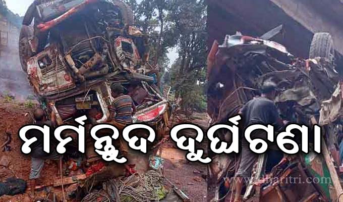 ସୁନ୍ଦରଗଡ଼,୫ା୧୦(ଡି.ଏନ୍.ଏ.): ସୁନ୍ଦରଗଡ଼ ଜିଲା କୋଇଡ଼ା ଥାନା ଅନ୍ତର୍ଗତ କାଲଟା ଫାଣ୍ଡି ନିକଟରେ ବୁଧବାର ଏକ ଟ୍ରକ୍ ଭାରସାମ୍ୟ ହରାଇ ତୋଡ଼ା ବ୍ରିଜରୁ ୫୦ଫୁଟ ତଳକୁ ଖସି ପଡ଼ିଛି। ଫଳରେ ଏହି ଦୁର୍ଘଟଣାରେ ଟ୍ରକ୍ ଡ୍ରାଇଭର ଓ ହେଲପରଙ୍କ ଜୀବନ ଯାଇଛି। ଉଭୟଙ୍କର ପରିଚୟ ବର୍ତ୍ତମାନ ସୁଦ୍ଧା ମିଳିପାରିନାହିଁ।