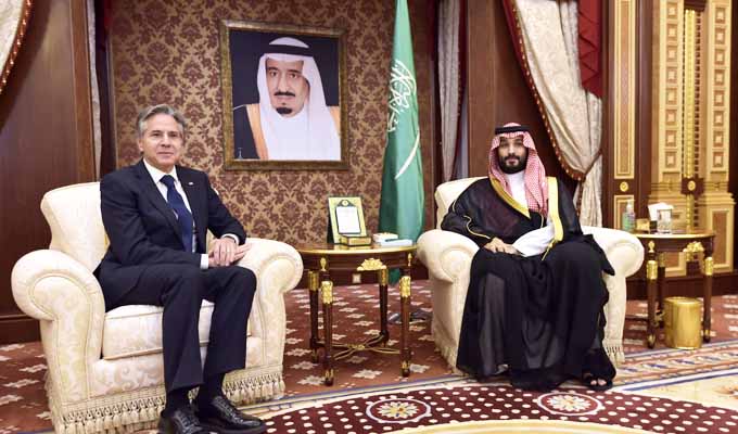ବ୍ଲିଙ୍କେନ ପ୍ରିନ୍ସ ମହମ୍ମଦ ବିନ୍ ସଲମାନଙ୍କୁ ରିୟାଦସ୍ଥିତ ତାଙ୍କ ପ୍ରାସାଦରେ ଆଜି ସକାଳେ ଭେଟିଥିବା ଆମେରିକାର ଜଣେ ଅଧିକାରୀ କହିଛନ୍ତି।