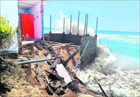 ଗୋପାଳପୁର,୨ା୭: ଗଁା ଆଡକୁ ମାଡ଼ି ଆସୁଛି ସମୁଦ୍ର। ଏଭଳି ଦୃଶ୍ୟ ଦେଖିବାକୁ ମିଳିଛି ଗଞ୍ଜାମ ଜିଲା ଗୋଳନ୍ଥରା ଥାନା ରାମେୟାପାଟଣା ଗ୍ରାମରେ। ଗତ ୫ ଦିନ ହେବ ସମୁଦ୍ରର ଉଚ୍ଚ ଜୁଆର ମାଡ଼ ହେବାରୁ ଏଲ. ଭୋଗରାଜୁ, ଏଲ.ଆପନା ଓ କେ.ଭୀମାଙ୍କର ୩ଟି ଘର ଭାଙ୍ଗିଯାଇଛି। ଏଥିଯୋଗୁ ଗ୍ରାମବାସୀ ଭୟଭୀତ ହୋଇ ପଡ଼ିଛନ୍ତି। ବାହୁଦା ନଦୀ ମୁହାଣ ସମୁଦ୍ରରେ ମିଶି ଦକ୍ଷିଣା ପବନ ହେବାରୁ ଦିଗ ପରିବର୍ତ୍ତନ କରି ଜୁଆର ରାମେୟାପାଟଣା ଗ୍ରାମ ଆଡ଼କୁ ମୁହଁାଇଲାଣି ବୋଲି ମତ୍ସ୍ୟଜୀବୀମାନେ କହିଛନ୍ତି। ପ୍ରତିବର୍ଷ ଏହି ସମୟରେ ଉଚ୍ଚ ଜୁଆର ମାଡ଼ି ଆସିବାରୁ ବହୁ ଘର ନଷ୍ଟ ହେବା ସହ ଧନ ହାନି ହେବାର ନଜିର ରହିଛି। ୨୦୧୬ରୁ ସମୁଦ୍ରର ଉଚ୍ଚ ଜୁଆର ମାଡ଼ିବା ଆରମ୍ଭ ହୋଇଥିଲା। ୨୦୧୯ରେ ୨୭ଘର ଭାଙ୍ଗିବା ସହ ଏକ ସାହି ସମୁଦ୍ରରେ ଲୀନ ହୋଇଯାଇଥିଲା। ଏହାର ପ୍ରତିକାର ପାଇଁ ପ୍ରଶାସନ ପକ୍ଷରୁ ବହୁବାର ପ୍ରତିଶ୍ରୁତି ଦିଆଯାଇଥିଲେ ମଧ୍ୟ ତାହା କରାଯାଉ ନାହିଁ। ଗଁାକୁ ଜୁଆର ପାଣି ନ ପଶିବା ପାଇଁ ବାହୁଦା ମୁହାଣରେ ଅସ୍ଥାୟୀ ବାଲିବସ୍ତା ପକାଯାଇ ବ୍ୟାରିକେଡ୍ କରାଯାଇଥିଲା, କିନ୍ତୁ ଏହା ସାମୁଦ୍ରିକ ଝଡ଼ ପ୍ରଭାବରେ ଭାଙ୍ଗି ଯାଇଥିଲା। ଅନ୍ୟପଟେ ସମୁଦ୍ର ଉପକୂଳରେ ଥିବା ଲୋକମାନଙ୍କୁ ରାମେୟାପାଟଣାର କିଛି ଦୂରରେ ଓଡ଼ିଶା ଡିଜାଷ୍ଟର ରିକୋଭରି ପ୍ରୋଜେକ୍ଟ (ଓଡିଆରପି)ରେ ପକ୍କାଘର ଦିଆଯାଇଥିଲା। କିନ୍ତୁ ସେଠାକୁ ଯାତାୟାତର ସୁବିଧା ନ ଥିବାରୁ ଲୋକମାନେ ସେଠାରେ ନ ରହି ସମୂଦ୍ର କୂଳରେ ଘର କରି ମାଛ ମାରି ଜୀବିକା ନିର୍ବାହ କରୁଥିଲେ।