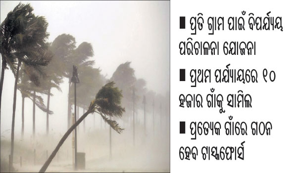 ପ୍ରଥମ ପର୍ଯ୍ୟାୟରେ ୧୦ ହଜାର ଗ୍ରାମରେ ବିପର୍ଯ୍ୟୟ ପରିଚାଳନା ଯୋଜନା କାର୍ଯ୍ୟକାରୀ ହେବ। ପର୍ଯ୍ୟାୟ କ୍ରମେ ଏହା ରାଜ୍ୟର ୩୦ ଜିଲାରେ ଥିବା ୫୫ ହଜାର ଗ୍ରାମରେ ଏହି ଯୋଜନା କରାଯିବ। ଏହା ଏକ ଗୋଷ୍ଠୀଭିତ୍ତିକ କାର୍ଯ୍ୟକ୍ରମ। ଗ୍ରାମର ଲୋକମାନେ ଏହି ଯୋଜନାରେ ସାମିଲ ହେବେ। ପଲ୍ଲିସଭା ଜରିଆରେ ଏ ନେଇ ସଚେତନ କରାଯିବ। ସରପଞ୍ଚ, ଓ୍ବାର୍ଡମେମ୍ବର, ଏନ୍ଜିଓଗୁଡ଼ିକ ଏହି ଯୋଜନା କାର୍ଯ୍ୟକାରୀ କରିବା ଦିଗରେ ସହାୟତା କରିବେ। ବନ୍ୟା, ବାତ୍ୟା, ସୁନାମି, ଭୂମିକମ୍ପ ସମୟରେ ଧନଜୀବନକୁ ଯଥାସମ୍ଭବ ହ୍ରାସ କରିବା ଲକ୍ଷ୍ୟରେ ଏହି ଯୋଜନା କାର୍ଯ୍ୟକାରୀ କରିବାକୁ ସରକାର ନିଷ୍ପତ୍ତି ନେଇଛନ୍ତି। ସେଥିପାଇଁ ଲୋକମାନଙ୍କ ମଧ୍ୟରେ ବ୍ୟାପକ ସଚେତନତା କାର୍ଯ୍ୟକ୍ରମ କରାଯିବ ବୋଲି ଓଏସ୍ଡିଏମ୍ଏର ଜଣେ ଅଧିକାରୀ କହିଛନ୍ତି।