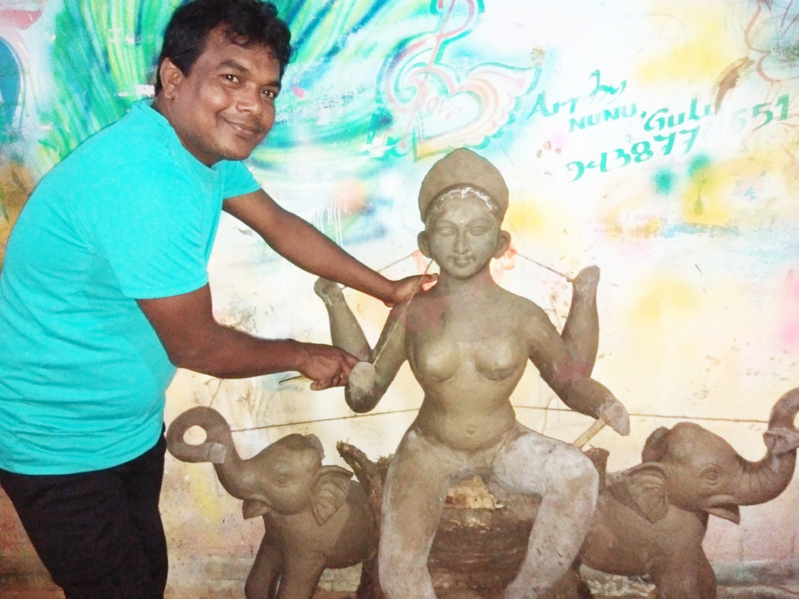 କାଠ ମେଢ଼ରେ କୁଟା ଓ ମାଟି କାଦୁଅରେ ମୂର୍ତ୍ତି ଗଢ଼ନ୍ତି। ଚଳିତ ବର୍ଷ ମାତ୍ର ୧୨ଟି ଗଣେଶ ମୂର୍ତ୍ତି ନିର୍ମାଣ କରିଛନ୍ତି। ପୂର୍ବ ବର୍ଷ ପାଖାପାଖି ୬୦ରୁ ଅଧିକ ମୂର୍ତ୍ତି ନିର୍ମାଣ କରି ବିକିଥିଲେ। କଟକଣା ଯୋଗୁ ମୂର୍ତ୍ତିର ଉଚ୍ଚତା କମିଲା। ଏଣୁ ଅଧିକ ମୂର୍ତ୍ତି ବିକ୍ରି ହେଉନାହିଁ କିମ୍ବା ସେହିଭଳି ମୂଲ୍ୟ ମିଳୁନାହିଁ। ସବୁ ପୂଜାରେ ମାନ୍ଦାବସ୍ଥା। ଏଣୁ ଗଢ଼ା ମଜୁରି ମଧ୍ୟ ଉଠୁନାହିଁ। ଦୀର୍ଘ ୧୦ ବର୍ଷ ହେଲା ଏହି ମୂର୍ତ୍ତି ଗଢ଼ିବା କାମରେ ନିୟୋଜିତ ମନୋଜ ା ଏଥିରୁ ଯାହା ରୋଜଗାର ହୁଏ ସେଥିରେ ସଂସାର ଚଳେ। ଯୁକ୍ତ ଦୁଇ ପାଠ ପଡ଼ିବା ପରେ କିଏ ଶିକ୍ଷକ ହେବ ତ କିଏ ଡାକ୍ତର ହେବ ବା ଇଞ୍ଜିନିୟର ଏଭଳି ଆଶା ରଖିଥିବା ବେଳେ କଳାପ୍ରତି ପିଲାଦିନରୁ ରହିଆସିଥିବା ଦୁର୍ବଳତାରୁ ମୂର୍ତ୍ତିକାର ଭାବରେ ନିଜକୁ ପ୍ରତିଷ୍ଠିତ କରିପାରିଛନ୍ତି ା ତାଙ୍କର କେହି ଗୁରୁ ନାହାନ୍ତି। ପିଲାଦିନରୁ ମାଟି ଓ ରଙ୍ଗ ତୂଳୀ ଧରି ନିଜେ ଶିଖିଥିବା କୁହନ୍ତି ା