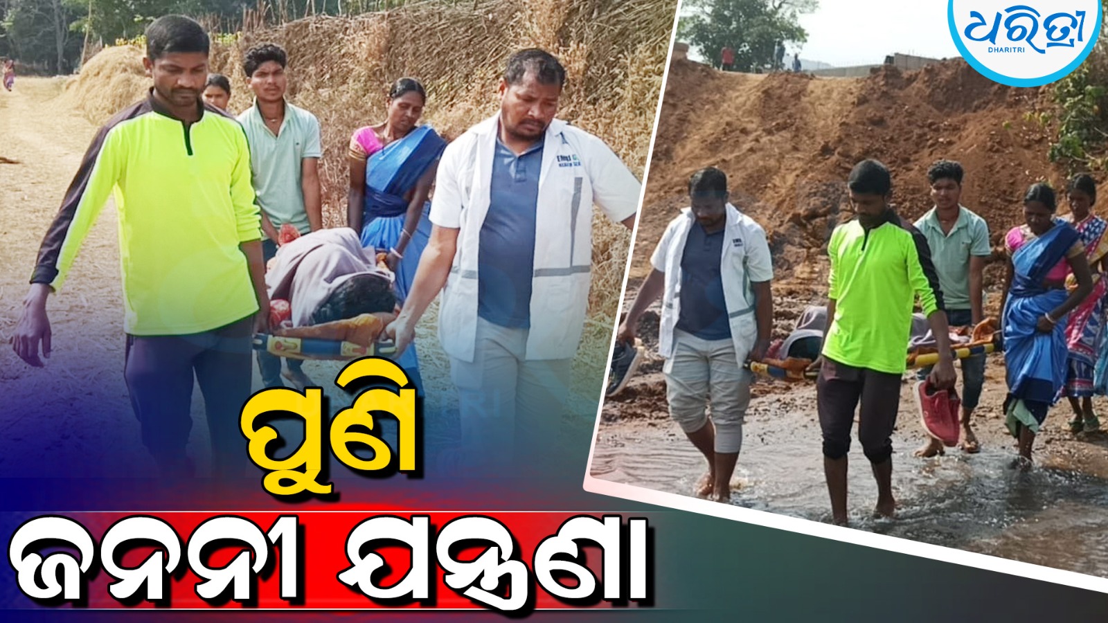 ଏପରି ଘଟଣା ଘଟିଛି ରାୟଗଡ଼ା ଜିଲା କାଶୀପୁର ବ୍ଲକ କୋଡ଼ିପାରି ପଞ୍ଚାୟତ କଣ୍ଟାବାଞ୍ଜି ଗାଁରେ। ବୁଧବାର ଗର୍ଭବତୀ କଳାମଣି ମାଝୀଙ୍କ ଗର୍ଭ ଯନ୍ତ୍ରଣା ହେବାରୁ ଆମ୍ବୁଲାନ୍ସକୁ ଫୋନ୍ କରିଥିଲେ ପରିବାରବର୍ଗ। କାଶୀପୁରଠାରୁ ୧୦୮ ଆମ୍ବୁଲାନ୍ସ ଗର୍ଭବତୀଙ୍କ ଗାଁକୁ ଯାଇଥିଲା। କିନ୍ତୁ କଣ୍ଟାବାଞ୍ଜି ଗାଁର ୧ କିମି ପୂର୍ବରୁ ଅଟକି ଗଲା ଆମ୍ବୁଲାନ୍ସ। କାରଣ ଗାଁକୁ ଯିବାକୁ ହେଲେ ରାସ୍ତାରେ ରହିଥିବା ଏକ ନଦୀ ପାରି ହେବାକୁ ପଡ଼େ। ଫଳରେ ଆମ୍ବୁଲାନ୍ସ ଗାଁରେ ପହଞ୍ଚିବାକୁ ବିଳମ୍ବ ହୋଇଥିଲା। ଏଣୁ ଗର୍ଭବତୀଙ୍କ ଅବସ୍ଥା ବିଗିଡ଼ିଥିଲା ଓ ସେ ଏକ କନ୍ୟା ସନ୍ତାନ ଜନ୍ମ ଦେଇଥିଲେ। ଚାଲିଚାଲି ଗାଁକୁ ଆମ୍ବୁଲାନ୍ସ କର୍ମଚାରୀ ଗାଁରେ ପହଞ୍ଚି ଷ୍ଟେଚର ମାଧ୍ୟମରେ ନଈ ଭିତରେ ପଶି ଖାଲଖମା ରାସ୍ତାରେ ଖଙ୍ଗାରମୁଣ୍ଡା ଛକରେ ରଖିଥିବା ଆମ୍ବୁଲାନ୍ସ ନିକଟରେ ପହଞ୍ଚି ସେଠାରୁ ୨୨ କିମି ଆମ୍ବୁଲାନ୍ସରେ ଆଣି କାଶୀପୁର ଗୋଷ୍ଠୀ ସ୍ବାସ୍ଥ୍ୟକେନ୍ଦ୍ରରେ ଭର୍ତ୍ତି କରିଛନ୍ତି। ବର୍ତ୍ତମାନ ବି ଗର୍ଭବତୀଙ୍କ ଅସ୍ଥା ଗମ୍ଭୀର ଅଛି। ଏନେଇ କାହାର ପ୍ରତିକ୍ରିୟା ମିଳିପାରିନାହିଁ।