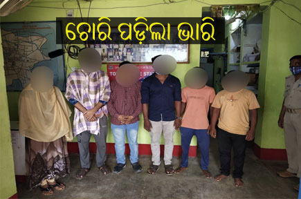 ଭବାନୀପାଟଣା,୭।୯(ଡି.ଏନ୍.ଏ.): କଳାହାଣ୍ଡି ଜିଲା ଭବାନୀପାଟଣା ଟାଉନ ଥାନା ପୋଲିସ ଚୋରି ମାମଲାରେ ଥାନା ଅଞ୍ଚଳର ଲୋକଙ୍କ ଘରେ ପସି ମୋବାଇଲ, ସୁନା ଅଳଙ୍କାର ଏବଂ ଅନ୍ୟାନ୍ୟ ସାମଗ୍ରୀ ଜବତ କରିବା ସହ ଚୋରଙ୍କୁ ଗିରଫ କରିଛି। ଏହା ସହ ଚୋରି ସାମଗ୍ରୀ କିଣିଥିବା ୫ ଜଣଙ୍କୁ ଗିରଫ କରି ସୋମବାର କୋର୍ଟଚାଲାଣ କରିଛି। ଗିରଫ ମୁଖ୍ୟ ଅଭିଯୁକ୍ତ ହେଲେ ଭବାନୀପାଟଣା କୁକୁଡା ଫାର୍ମ ଅଞ୍ଚଳରେ ରହୁଥିବା ଦେପୁର ଗ୍ରାମର ନୂତନ କିଶୋର ବାଣୁଆ (୩୦)।