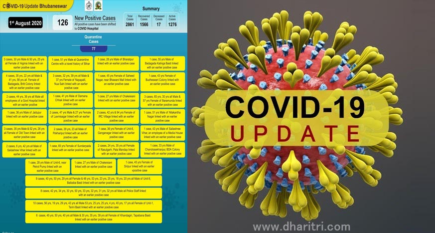 ସୂଚନାଯୋଗ୍ୟ, ବର୍ତ୍ତମାନ ସୁଦ୍ଧା ଭୁବନେଶ୍ୱରରେ ମୋଟ୍ ଆକ୍ରାନ୍ତଙ୍କ ସଂଖ୍ୟଶ ୨୮୬୧ରେ ପହଞ୍ଚିଥିବା ବେଳେ ୧୫୬୬ ଜଣ ସୁସ୍ଥ ହୋଇଛନ୍ତି। ୧୨୭୬ ଚିକିତ୍ସିତ ହେଉଛନ୍ତି। ୧୭ ଜଣଙ୍କ ମୃତ୍ୟୁ ଘଟିଛି।