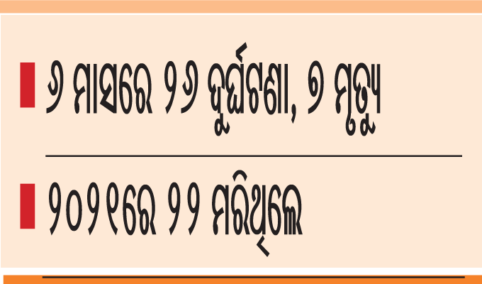 ଏହିସବୁ ଅଞ୍ଚଳରେ ନିୟମିତ ଭାବେ ବାରମ୍ବାର ଦୁର୍ଘଟଣା ଘଟୁଛି। ଗତ ଜାନୁୟାରୀରୁ ଜୁନ୍ ମଧ୍ୟରେ ସହରରେ ୨୬ଟି ଦୁର୍ଘଟଣା ଘଟିଛି। ସେଥିମଧ୍ୟରୁ ୭ ଜଣଙ୍କ ମୃତ୍ୟୁ ଘଟିଛି (ମୃତକଙ୍କ ମଧ୍ୟରେ ୫ ଜଣ ପୁରୁଷ ଓ ୨ ମହିଳା)। ସେହିଭଳି ୧୮ ଜଣ ଗୁରୁତର ହୋଇଛନ୍ତି (୧୭ ପୁରୁଷ ଓ ଜଣେ ମହିଳା)। ୬ ସାମାନ୍ୟ ଆହତ ହୋଇଥିବା ଟ୍ରାଫିକ ପୋଲିସ ପକ୍ଷରୁ ସୂଚନା ମିଳିଛି।
