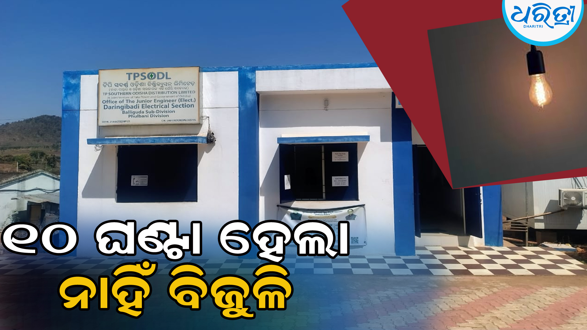 ଦାରିଙ୍ଗବାଡ଼ି,୩୦ା୪(ଅରୁଣ ସାହୁ): କନ୍ଧମାଳ ଜିଲା ଦାରିଙ୍ଗବାଡ଼ି ବ୍ଲକ ସିମନବାଡ଼ି ଫିଡରରେ ୧୦ ଘଣ୍ଟା ହେଲା ୮ ପଞ୍ଚାୟତ ଅଞ୍ଚଳରେ ବିଦ୍ୟୁତ୍ ସେବା ଠପ୍ ହୋଇଯାଇଛି। କୌଣସି ବର୍ଷା ପବନ ନ ଥାଇ ମଧ୍ୟ ସକାଳ ପ୍ରାୟ ୮ରୁ ଏହି ସେବା ଅଚଳ ହୋଇପଡ଼ିଛି। ଫଳରେ ଉକ୍ତ ଫିଡରର ଶ୍ରାନିକେତା, ସିମନବାଡ଼ି, କିରିକୁଟି, ତିଲୋରୀ, ବୁଡ଼ାଗୁଡା, ଗୁମିକିଆ, କୋଟଗଡ଼ ବ୍ଲକ ପକାରୀ, ବାଲିଗୁଡ଼ା ବ୍ଲକ ଋତୁଙ୍ଗିଆ ପର୍ଯ୍ୟନ୍ତ ଏହି ସେବା ଅଚଳ ହୋଇପଡ଼ିଛି।