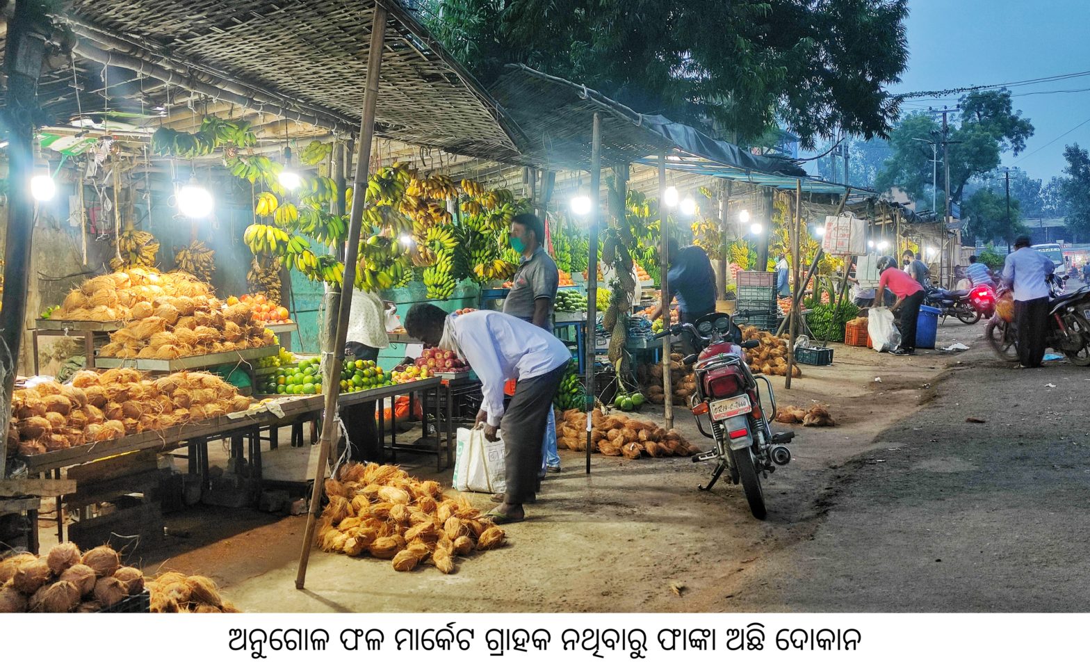 ଚଳିତ ଥର ପାର୍ବଣ କୋଳାହଳ ଶୂନ୍ୟ। ଲୋକଙ୍କ ଆଗମନ ନାହିଁ କି ବେପାର ଜମୁନି। ପୂଜାରେ ଦର ବଢିଲେ ବି ଲୋକେ ଭୋଗ ସହ ଘରକୁ ନେବା ପାଇଁ ଫଳ କିଣିଥାନ୍ତି। ଚଳିତ ଥର ମୂଲ୍ୟ ସେତେ ବଢି ନ ଥିଲେ ବି ଲୋକେ କିଣୁନାହାନ୍ତି। ମଣ୍ଡପରେ ପୂଜା ପାଇଁ ଲୋକେ ଆସୁ ନ ଥିବାରୁ ଫଳ ଚାହିଦା କମିଛି। ପୂଜା ୩ ଦିନରେ ଅଧିକ ଫଳ ବିକ୍ରି ହୋଇଥାଏ। ଏହାକୁ ଦୃଷ୍ଟିରେ ରଖି ଅଧିକ ଫଳ ମଗାଯାଇଥିଲା। ହେଲେ ବିକ୍ରି ନ ଥିବାରୁ କେବଳ ଦୋକାନ ଖୋଲି ବସି ରହୁଛୁ। ଶନିବାର ଅଷ୍ଟମୀ ପୂଜା ସରିଥିଲେ ଅଧା ବେପାର ବି ହୋଇନାହିଁ। ଲୋକେ ନିଜ ଆବଶ୍ୟକତା କମାଇଥିବାରୁ କମ୍ ବିକ୍ରି ହେଉଛି। ଫଳ ରହି ନଷ୍ଟ ହେବାକୁ ବସିଲାଣି। ଅଧିକ ଫଳ ପାଇଁ ବଇନା ମଧ୍ୟ ଦିଆସରିଛି। ସେଗୁଡିକ ବି ନଷ୍ଟ ହେବା ସହ କ୍ଷତି ସହିବା ଚିନ୍ତାରେ ପଡିଛୁ।