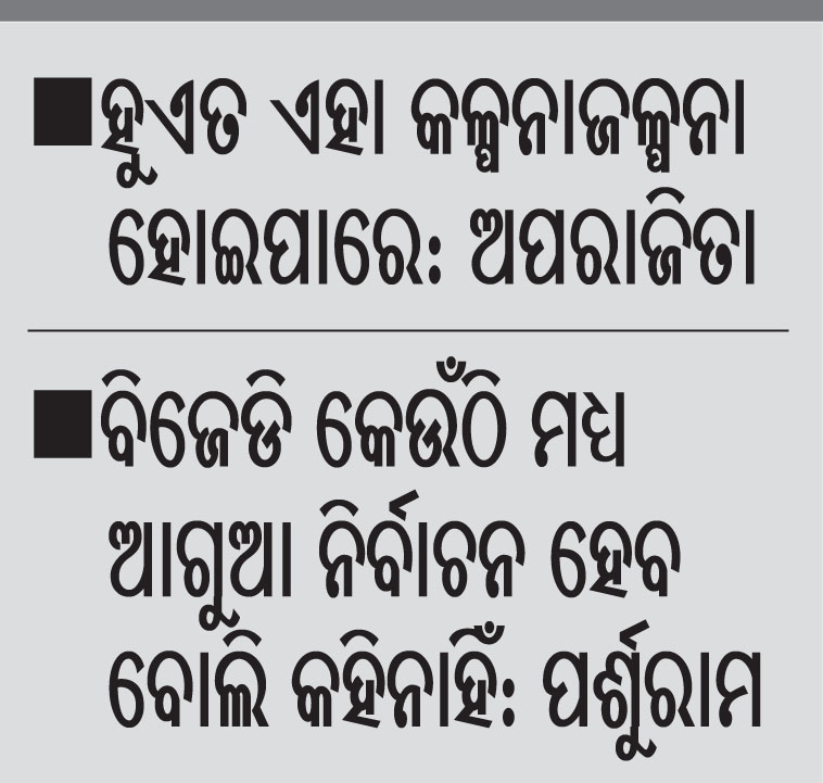 ଭୁବନେଶ୍ୱର, ୧୫।୮(ବ୍ୟୁରୋ):ରାଜ୍ୟ ରାଜନୀତିରେ କିଛିଦିନ ହେବ ବିଜେଡି ଓ ଭାଜପା ମଧ୍ୟରେ ମେଣ୍ଟ ହୋଇପାରେ ବୋଲି ଚର୍ଚ୍ଚା ଆଲୋଚନା ଜୋର୍ ଧରିଛି। ନିକଟରେ ଓଡିଶା ଗସ୍ତରେ ଆସିଥିବା ଏକାଧିକ ନ୍ଦେ୍ନ୍ଦ୍ରମନ୍ତ୍ରୀ ଏହି ମେଣ୍ଟ ହେବା ନେଇ ଚାଲିଥିବା ଚର୍ଚ୍ଚାକୁ ବାରମ୍ବାର ଖଣ୍ଡନ କରୁଥିଲେ ସୁଦ୍ଧା ଏଭଳି ଆଲୋଚନା ବନ୍ଦ ହେଉନାହିଁ। ଏପରିକି ଆଗୁଆ ନିର୍ବାଚନ ହେବ ବୋଲି ମଧ୍ୟ ବାରମ୍ବାର ଆଲୋଚନା ଚାଲିଛି। ତେବେ ଏହି ଦୁଇଟି ଯାକ ଗୁରୁତ୍ୱପୂର୍ଣ୍ଣ ପ୍ରସଙ୍ଗକୁ ଭାଜପା ଏବଂ ବିଜେଡି ମଧ୍ୟରେ ଜୋର୍ ଧରିଛି ରାଜନୀତି। ଭାଜପା ଏମ୍ପି ଅପରାଜିତା ଷଡଙ୍ଗୀ କହିଛନ୍ତି ଯେ, ଭାଜପା ଓ ବିଜେଡି ମଧ୍ୟରେ ମେଣ୍ଟ ହେବାର କୌଣସ ପ୍ରଶ୍ନ ଉଠୁନାହିଁ। କେନ୍ଦ୍ରମନ୍ତ୍ରୀମାନେ ପୂର୍ବରୁ ଏହା କହିସାରିଛନ୍ତି। ଆଗୁଆ ର୍ନିବାଚନ ସମ୍ଭାବନା ନେଇ ଅପରାଜିତା କହିଛନ୍ତି, ଆଗୁଆ ର୍ନିବାଚନ ନେଇ ଯେଉଁ ପର୍ଯ୍ୟନ୍ତ ରାଜ୍ୟ ପ୍ରସ୍ତାବକୁ କେନ୍ଦ୍ର ଅନୁମୋଦନ କରିନି, ଏହା କିଭଳି ସମ୍ଭବ। ଆଗୁଆ ର୍ନିବାଚନ ନେଇ ରାଜ୍ୟ ପ୍ରସ୍ତାବ ଦେଇଛି କି ନାହିଁ ଜଣାନାହିଁ, ହୁଏତ ଏହା କଳ୍ପନାଜଳ୍ପନା ହୋଇପାରେ ବୋଲି ଅପରାଜିତା କହିଛନ୍ତି। ଭାଜପା ନେତା ତଥା ବିରୋଧୀ ଦଳ ମୁଖ୍ୟ ସଚେତକ ମୋହନ ମାଝୀ କହିଛନ୍ତି, ତେଣୁ ବର୍ଷା ଏବଂ ଶୀତ ଅଧିବେଶନ ମଝିରେ ଯଦି ସ୍ବତନ୍ତ୍ର ଅଧିବେଶନ ଭଳି ହୁଏ ତେବେ ହୁଏତ ଆଗୁଆ ନିର୍ବାଚନ ହେବ ବୋଲି କୁହାଯାଇପାରେ। କେନ୍ଦ୍ର ଯେବେ କରିବ ରାଜ୍ୟ ସେବେ ନିର୍ବାଚନ କରିବ ବୋଲି ମୋହନ କହିଛନ୍ତି। ବିଜେଡି ନେତା ପର୍ଶୁରାମ ଧଡା କହିଛନ୍ତି, ସାମ୍ବିଧାନିକ ବ୍ୟବସ୍ଥା ଅନୁଯାୟୀ କେନ୍ଦ୍ର ହେଉ ବା ରାଜ୍ୟ ସରକାର ଯେତେବେଳେ ଚାହିଁିବେ ସରକାର ଭାଙ୍ଗିପାରିବେ। ବିଜେଡି କେଉଁଠି ମଧ୍ୟ କହି ନାହିଁ ଆଗୁଆ ନିର୍ବାଚନ ହେବ। ଯଦି ବି ଆଗୁଆ ନିର୍ବାଚନ ହେବ ତେବେ ଏହା କିଛି ନୂଆ କଥା ନୁହେଁ। ବିଗତ ଦିନରେ ବହୁଥର ଆଗୁଆ ନିର୍ବାଚନ ହେବା କଥା ସମସ୍ତେ ଦେଖିଛନ୍ତି ବୋଲି ଧଡା କହିଛନ୍ତି।