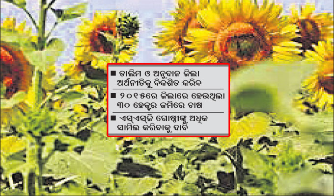 କେନ୍ଦ୍ରାପଡ଼ା ଅଫିସ,୧୬।୪: କେନ୍ଦ୍ରାପଡ଼ା ଜିଲା ରାଜକନିକା ବ୍ଲକ କୋଇଲିପୁରର ଚାରିପୋଖରିଆ ଗ୍ରାମର ସ୍ବୟଂସହାୟକ ମହିଳା ଗୋଷ୍ଠୀ ଚଳିତ ବର୍ଷ ୭ ଏକର ଜମିରେ ସୂର୍ଯ୍ୟମୁଖୀ ଚାଷ କରିଛନ୍ତି ା ଏହି ଚାଷ ସେମାନଙ୍କ ପାଇଁ ଦ୍ୱିତୀୟ ବର୍ଷ ା ପ୍ରଥମ ବର୍ଷର ଅଭିଜ୍ଞତା ସେମାନଙ୍କୁ ପରିପକ୍ୱ କରିବା ସହିତ ମାଆ ମଙ୍ଗଲ ଗୋଷ୍ଠୀର ସୂର୍ଯ୍ୟମୁଖୀ ତେଲ ସ୍ଥାନୀୟ ବଜାରରେ ଆଦୃତି ଲାଭ କରିଛି ା ତେବେ ତାଲିମ ଓ ପ୍ରୋତ୍ସାହନର ଅଭାବ ଯୋଗୁ ଏହି ଅର୍ଥକରୀ ଫସଲ ଏବେ ଯାଏ ଜିଲାର ଚାଷୀଙ୍କୁ ବିଶେଷ ଆଗ୍ରହ ସୃଷ୍ଟି କରିପାରିନାହିଁ ା ରବି ଫସଲ ସମୟରେ ହେଉଥିବା ଏହି ଚାଷକୁ ଯୋଜନାବଦ୍ଧ ଭାବେ ପ୍ରୋତ୍ସାହିତ କଲେ କ୍ଷୁଦ୍ର ଶିଳ୍ପ ପ୍ରତିଷ୍ଠା ସହିତ ଜିଲା ଅର୍ଥନୀତି ବେଶ୍ ପ୍ରଭାବିତ ହେବ ବୋଲି ଚାଷୀ ଓ ବୁଦ୍ଧଜୀବୀ ମତ ଦେଇଛନ୍ତି ା