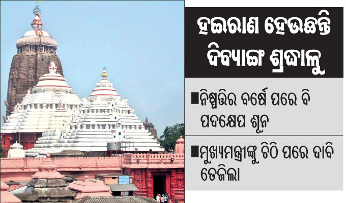 ସୂଚନା ଅନୁଯାୟୀ, ଦିବ୍ୟାଙ୍ଗ ଶ୍ରଦ୍ଧାଳୁଙ୍କ ପାଇଁ ଉତ୍ତର ଦ୍ୱାର ଓ ଘଣ୍ଟିଦ୍ୱାରରେ ର଼୍ୟାମ୍ପ ରହିଛି। ମାତ୍ର ଏହି ର଼୍ୟାମ୍ପ ଦେଇ ହୁଇଲଚେୟାରରେ ଦିବ୍ୟାଙ୍ଗ ଶ୍ରଦ୍ଧାଳୁ ଯାଇପାରୁ ନାହାନ୍ତି। ସେମାନଙ୍କୁ ସମ୍ପର୍କୀୟ ଓ ସ୍ବେଚ୍ଛାସେବୀମାନେ କାନ୍ଧରେ ବସାଇ ନେଉଥିବା ଦେଖିବାକୁ ମିଳିଛି। ପ୍ରଶାସନର ଦୂରଦୃଷ୍ଟିର ଅଭାବ ଏବଂ ସେବାୟତଙ୍କ ସହ ବିନା ଆଲୋଚନାରେ ର଼୍ୟାମ୍ପ କରାଯିବା ଯୋଗୁ ଏହାର ସେବା ମିଳିପାରୁନାହିଁ। ଉତ୍ତରଦ୍ୱାରଠାରୁ ଆନନ୍ଦବଜାର ଦେଇ କୀର୍ତ୍ତନ ଚକଡ଼ା ଦେଇ ଘଣ୍ଟି ଦ୍ୱାର ପର୍ଯ୍ୟନ୍ତ ର଼୍ୟାମ୍ପ ବ୍ୟବସ୍ଥା କରାଯିବାକୁ ୨୦୨୧ ନଭେମ୍ବରରେ ନିଷ୍ପତ୍ତି ହୋଇଥିଲା। ମାତ୍ର ଏହା କାର୍ଯ୍ୟକାରୀ ନ ହେବାରୁ ବର୍ତ୍ତମାନ ଦିବ୍ୟାଙ୍ଗମାନେ ଅସୁବିଧାର ସମ୍ମୁଖୀନ ହେଉଛନ୍ତି। ପାର୍କିଂଠାରୁ ଇ-ଅଟୋ ପର୍ଯ୍ୟନ୍ତ ଦିବ୍ୟାଙ୍ଗଙ୍କ ପାଇଁ ସ୍ବତନ୍ତ୍ର ସୁବିଧା ରହିଛି। ମାତ୍ର ର଼୍ୟାମ୍ପ ସୁବିଧା ନ ଥିବାରୁ ମହାପ୍ରଭୁଙ୍କ ଦର୍ଶନ କରିବାରେ ସେମାନଙ୍କ ପାଇଁ ସମସ୍ୟା ଉପୁଜୁଛି। ତେଣୁ ଖୁବଶୀଘ୍ର ର଼୍ୟାମ୍ପ ବ୍ୟବସ୍ଥା କାର୍ଯ୍ୟକାରୀ କରିବାକୁ ସବୁ ମହଲରେ ଦାବି ହୋଇଛି। ସୁପ୍ରିମକୋର୍ଟଙ୍କ ନିର୍ଦ୍ଦେଶ ଆଧାରରେ ଏହି ପ୍ରକଳ୍ପ ଚାଲିଥିଲେ ମଧ୍ୟ ଦିବ୍ୟାଙ୍ଗଙ୍କ ପାଇଁ ରାମ୍ପ ବ୍ୟବସ୍ଥା ହୋଇ ନ ପାରିବା ପ୍ରଶ୍ନବାଚୀ ସୃଷ୍ଟି କରିଛି। ଶ୍ରୀମନ୍ଦିର ଭିତରକୁ ଦିବ୍ୟାଙ୍ଗଙ୍କ ପ୍ରବେଶ ପାଇଁ ର଼୍ୟାମ୍ପ ନିର୍ମାଣ ପ୍ରସଙ୍ଗ ନେଇ ହାଇକୋର୍ଟରେ ରୁଜୁ ମାମଲାରେ ଶ୍ରୀମନ୍ଦିର ପ୍ରଶାସନ, ଶ୍ରୀମନ୍ଦିର ପରିଚାଳନା କମିଟି ଓ ପୁରୀ ଜିଲାପାଳ ମିଳିତ ଭାବେ ଏକ ଆଇନ ସମ୍ମତ ନିଷ୍ପତ୍ତି ନେବାକୁ ପୂର୍ବରୁ ହାଇକୋର୍ଟ ନିର୍ଦ୍ଦେଶ ଦେଇଥିଲେ। ଆବେଦନକାରୀ ଜଣେ ଦିବ୍ୟାଙ୍ଗ ହୋଇଥିବା ବେଳେ ସେ ହୁଇଲ୍ ଚେୟାରରେ ଯାତାୟାତ କରୁଛନ୍ତି। ଗତବର୍ଷ ବିଶ୍ୱ ଭିନ୍ନକ୍ଷମ ଦିବସରେ ଜଣାଶୁଣା ଦିବ୍ୟାଙ୍ଗ ଅଭିନେତା ତଥା ଫିଲ୍ଣ ନିର୍ମାତା ଜିତେନ୍ଦ୍ର ବିଶ୍ୱାଳ ଏ ନେଇ ମୁଖ୍ୟମନ୍ତ୍ରୀଙ୍କୁ ଟୁଇଟ୍ ମଧ୍ୟ କରିଥିଲେ। ଅନ୍ୟପଟରେ ଗତବର୍ଷ ଦିବ୍ୟାଙ୍ଗ ଭକ୍ତଙ୍କ ଦାବିକୁ ସମର୍ଥନ ଜଣାଇଥିଲେ ବିଶିଷ୍ଟ ସାମ୍ବାଦିକ ରାଜଦୀପ ସରଦେଶାଇ ଏବଂ ତେହସିନ ପୁନାୱାଲା। ଗତ ୧୫ ତାରିଖରେ ଏ ନେଇ ଆଇନଜୀବୀ ମୃଣାଳିନୀ ପାଢ଼ୀ ମୁଖ୍ୟମନ୍ତ୍ରୀଙ୍କୁ ଚିଠି ଲେଖିଛନ୍ତି। ଆସନ୍ତା ଜାନୁୟାରୀ ୧ରୁ ବ୍ୟବସ୍ଥା କାର୍ଯ୍ୟକାରୀ ପାଇଁ ଅନୁରୋଧ କରିଛନ୍ତି। ଫଳରେ ଏହି ଦାବି ପୁଣି ଜୋର୍ ଧରିଛି। ଏ ସମ୍ପର୍କରେ ଜିଲାପାଳ ସମର୍ଥ ବର୍ମା କହିଛନ୍ତି, ଉତ୍ତର ଦ୍ୱାର ପଟେ ଯେଉଁ ର଼୍ୟାମ୍ପ ବ୍ୟବସ୍ଥା କରାଯାଇଛି ତାହା ବର୍ତ୍ତମାନ ସୁଦ୍ଧା ସମ୍ପୂର୍ଣ୍ଣ ହୋଇନାହିଁ। ଯଥାଶୀଘ୍ର ତାହା ଶେଷ କରାଯିବ। ଶ୍ରୀମନ୍ଦିର ପ୍ରଶାସନ ଓ ସେବାୟତଙ୍କ ସହମତିରେ ଏକ ମଡେଲ ପ୍ରସ୍ତୁତ କରାଯିବ। ଫଳରେ ଦିବ୍ୟାଙ୍ଗମାନେ ସହଜରେ ଶ୍ରୀମନ୍ଦିର ଯାଇ ମହାପ୍ରଭୁଙ୍କ ଦର୍ଶନ କରିପାରିବେ।