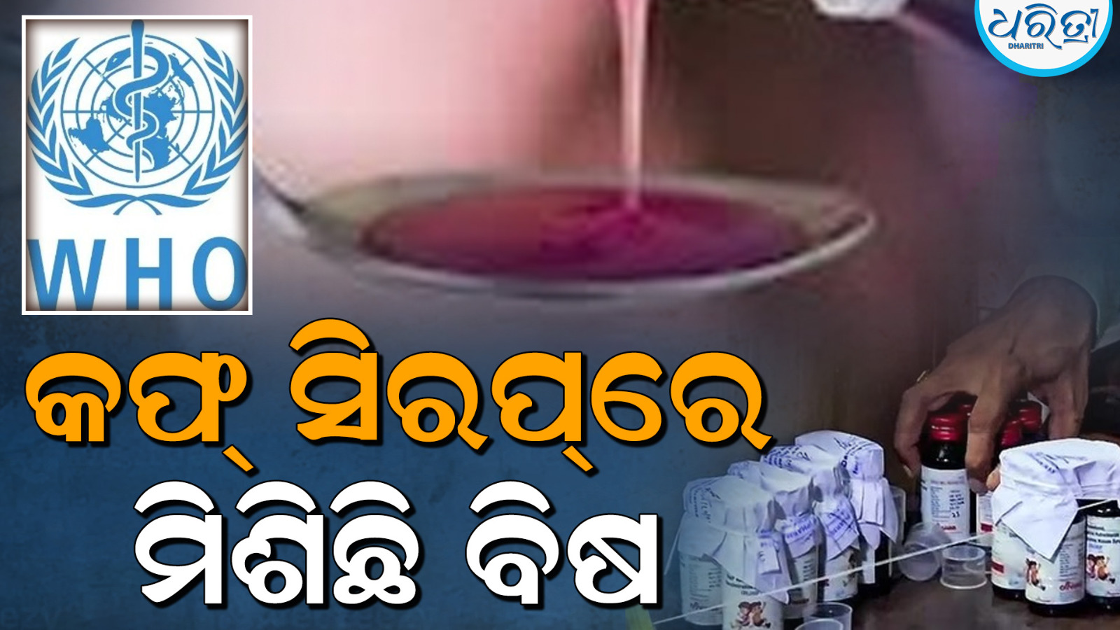 ବିଶ୍ୱ ସ୍ବାସ୍ଥ୍ୟ ସଂସ୍ଥା ଶ୍ରୀସାନ ଫାର୍ମାର କୋଲଡରିଫ, ରେଡନେକ୍ସ ଫାର୍ମାର ରେସ୍ପିଫ୍ରେସ TR ଏବଂ ସେପ ଫାର୍ମାର ରିଲାଇଫ ସିରପର ନିର୍ଦ୍ଦିଷ୍ଟ ବ୍ୟାଚ୍ଗୁଡ଼ିକୁ ଭେଜାଲ ଭାବରେ ଚିହ୍ନଟ କରିଛି। WHO କହିଛି ଯେ, ଏହି ସିରପଗୁଡ଼ିକ ସ୍ବାସ୍ଥ୍ୟ ପାଇଁ ବିପଦ ସୃଷ୍ଟି କରେ। ଏହା ଗୁରୁତର ଏବଂ ମାରାତ୍ମକ ରୋଗ ମଧ୍ୟ ସୃଷ୍ଟି କରିପାରେ।