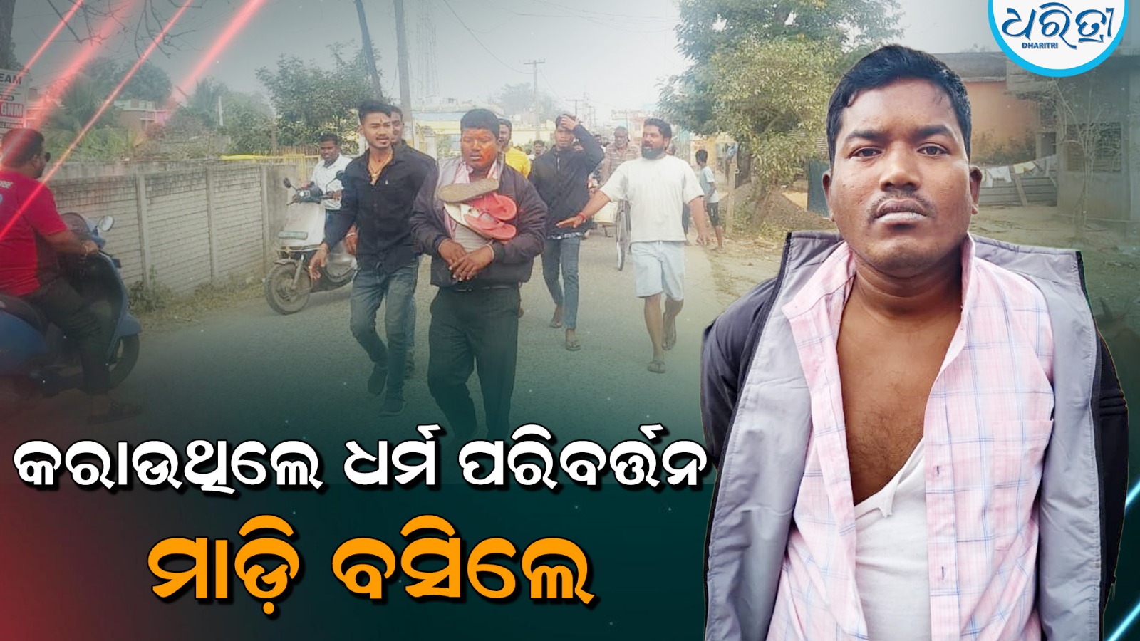 ପରଜଙ୍ଗ, ୫।୧ (ନିଗମାନନ୍ଦ ଦଳବେହେରା): ଢେଙ୍କାନାଳ ଜିଲା ପରଜଙ୍ଗ ଗ୍ରାମ ପଞ୍ଚାୟତର ବିଏସ୍ଏନ୍ଏଲ୍ କାର୍ଯ୍ୟାଳୟ ନିକଟରେ ଥିବା ଏକ ଦଳିତ ବସ୍ତି ମଧ୍ୟରେ ଜଣେ ବ୍ୟକ୍ତିଙ୍କ ଘରେ ରବିବାର ସକାଳେ ଅନୁଗୋଳ ଜିଲା ଛେଣ୍ଡିପଦା ବ୍ଲକ ବୋରୋସାହି ପଞ୍ଚାୟତ ଖମାର ଗ୍ରାମର ଖ୍ରୀଷ୍ଟଧର୍ମି ଦଳିତ ପରିବାରର ବିପିନ ବିହାରୀ ନାଏକ ଏବଂ ତାଙ୍କ ସ୍ତ୍ରୀ ବନ୍ଦନା ନାଏକ ହିନ୍ଦୁ ଧର୍ମର ଲୋକମାନଙ୍କୁ ଏକାଠି କରି ଧର୍ମ ପରିବର୍ତନ କରିବା ପାଇଁ ବିଭିନ୍ନ ପ୍ରଲୋଭନ ଦେଖାଇ ପ୍ରବର୍ତ୍ତାଉଥିଲେ। ଏହା ଜାଣିପାରି ପରଜଙ୍ଗ ଗ୍ରାମର କିଛି ଯୁବକ ସେଠାରେ ପହଞ୍ଚି ବିରୋଧ କରିଥିଲେ। ପରେ ସେଠାରେ ଶତାଧିକ ଗ୍ରାମବାସୀ ପହଞ୍ଚିଯିବା ପରେ ସେମାନେ ଛତ୍ରଭଙ୍ଗ ଦେଇଥିଲେ। କିନ୍ତୁ ବିପିନଙ୍କୁ ଲୋକେ କାବୁକରି ଗ୍ରାମ ଚଉପାଢିକୁ ନେଇଥିଲେ। ଖବର ପାଇ ଏସ୍ଆଇ ଦେବଗ୍ରାହୀ ମହାନ୍ତି ଓ ପୋଲିସ କର୍ମଚାରୀ ପହଞ୍ଚି ବିପିନଙ୍କୁ ଉଦ୍ଧାର କରି ଥାନାରେ ଅଟକ ରଖି ତଦନ୍ତ ଜାରି ରଖିଛନ୍ତି।