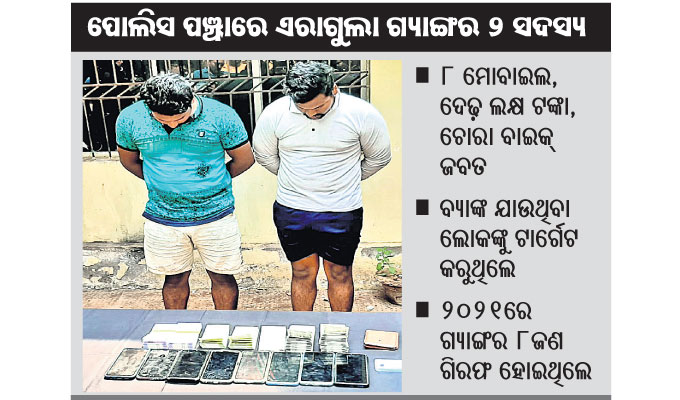 ବିଶେଷକରି ବ୍ୟାଙ୍କରୁ ଟଙ୍କା ଉଠାଇ ଫେରୁଥିବା ଓ ଡିପୋଜିଟ କରିବାକୁ ଯାଉଥିବା ଗ୍ରାହକଙ୍କୁ ଟାର୍ଗେଟ କରିଥାନ୍ତି। ପରେ ଏମାନଙ୍କ ଭିତରୁ ଜଣେ ଦୁଇଜଣ ବ୍ୟାଙ୍କ ଭିତରେ ରହି ଟଙ୍କା ଉଠାଉଥିବା ବ୍ୟକ୍ତିଙ୍କ ଉପରେ ନଜର ରଖି ବାହାରେ ଥିବା ଗ୍ୟାଙ୍ଗର ଅନ୍ୟମାନଙ୍କୁ ଖବର ଜଣାନ୍ତି। ଫଳରେ ସେମାନେ ଉକ୍ତ ବ୍ୟକ୍ତିଙ୍କୁ ପିଛା କରିବା ସହ ରାସ୍ତାରେ ଟଙ୍କା ପକାଇ କିମ୍ବା ଅନ୍ୟମନସ୍କ କରାଇ ଟଙ୍କା ବ୍ୟାଗକୁ ଲୁଟ୍ କରିନିଅନ୍ତି। ଏପରିକି ଛୁରି, ଖଣ୍ଡା, ଭୁଜାଲି ଭଳି ମାରଣାସ୍ତ୍ର ବ୍ୟବହାର କରି ଚୋରି, ଛିନ୍ତାଇ, ଲୁଟ୍ପାଟ କରନ୍ତି। ଲୁଟ୍ ପରେ ସେମାନେ ବାହାର ରାଜ୍ୟକୁ ଯାଇ ଉକ୍ତ ଚୋରା ସାମଗ୍ରୀକୁ ସେଠାରେ ବିକି ପୁଣି ଓଡ଼ିଶା ଫେରିଆସନ୍ତି। ଯଥା ପଶ୍ଚିମବଙ୍ଗ, ଆସାମ, ବେଙ୍ଗାଲୁରୁ, ଚେନ୍ନାଇ ଆଦି ରାଜ୍ୟରେ ବିକ୍ରି କରୁଥିବା ଜଣାପଡିଛି। ତେବେ ଏଭଳି ଅଧିକ ଅଭିଯୋଗ ହେବା ପରେ ପୋଲିସ ତଦନ୍ତ ବେଳେ କେତେଜଣ ଅଭିଯୁକ୍ତଙ୍କୁ ଚିହ୍ନଟ କରି ଖୋଜୁଥିଲା। ୨ଦିନ ତଳେ ଉପରୋକ୍ତ ୨ଅଭିଯୁକ୍ତ ହାଇଟେକ ଛକ ନିକଟରେ ଲୁଟ୍ ପାଇଁ ଷଡ଼ଯନ୍ତ୍ର କରୁଥିବା ବେଳେ ପୋଲିସ ଚଢ଼ାଉ କରି ଧରିଥିଲା। ଅଭିଯୁକ୍ତଦ୍ୱୟକୁ ଥାନାକୁ ଆଣି ପଚରାଉଚରା ବେଳେ ଆନ୍ତଃରାଜ୍ୟ ର଼୍ୟାକେଟ ଚଲାଇବା ସହ ତାଙ୍କ ହ୍ବାଟସଆପକୁ ବାହାର ରାଜ୍ୟର ଲୋକଙ୍କ ମେସେଜ ଆସୁଥିଲା। କେଉଁ ପ୍ରକାର ଦାମୀ ମୋବାଇଲ ଅଛି ଏବଂ ତାହା କେତେ ଟଙ୍କାରେ ବିକ୍ରି କରିବ ଡିମାଣ୍ଡ କରୁଥିବା ତଦନ୍ତ ବେଳେ ପୋଲିସ ଜାଣିବାକୁ ପାଇଛି। ଏହି ୨ ଅଭିଯୁକ୍ତଙ୍କ ନାମରେ କଟକ-ଭୁବନେଶ୍ୱରର ବିଭିନ୍ନ ଥାନାରେ ୮ ମାମଲା ରହିଛି। ସେହିପରି ୨୦୨୧ରେ ମଧ୍ୟ କମିଶନରେଟ ପୋଲିସ ଏରାଗୁଲା ଗ୍ୟାଙ୍ଗର ୮ ଜଣଙ୍କୁ ଗିରଫ କରି କୋର୍ଟଚାଲାଣ କରିଥିଲା।