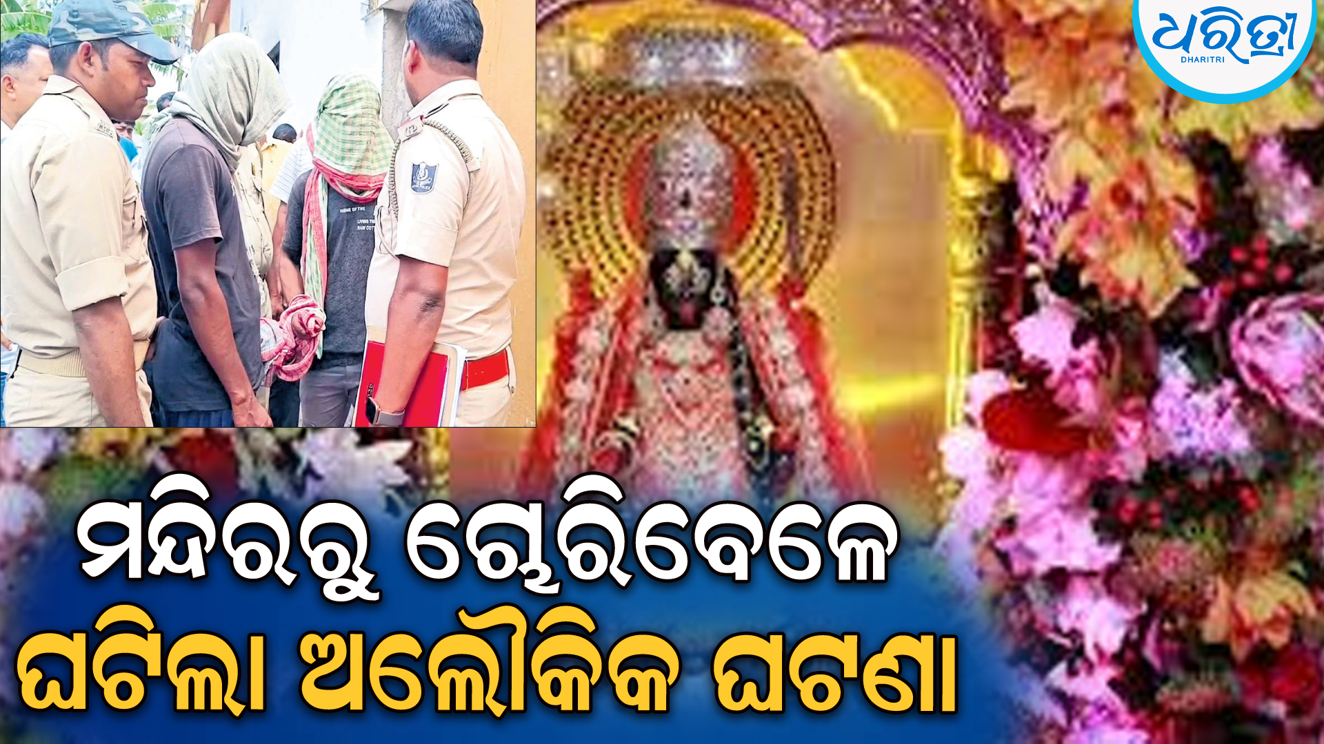 ଭଦ୍ରକ,୧୦ା୪(ସନାତନ ରାଉତ): ଭଦ୍ରକର ଅଧିଷ୍ଠାତ୍ରୀ ଦେବୀ ଭଦ୍ରକାଳୀ ମନ୍ଦିରର ହୁଣ୍ଡିରେ ଥିବା ଟଙ୍କା ରବିବାର ରାତିରେ ଚୋରି ହୋଇଥିଲା। ଏହି ଚୋରିରେ ସମ୍ପୃକ୍ତ ୨ଜଣ ଯୁବକଙ୍କୁ ଭଦ୍ରକ ଗ୍ରାମାଞ୍ଚଳ ପୋଲିସ ସୋମବାର ଅପରାହ୍ନରେ ଗିରଫ କରିଥିଲା। ଉଭୟ ଅଭିଯୁକ୍ତଙ୍କୁ ପୋଲିସ ମନ୍ଦିରକୁ ନେଇ କିପରି ଚୋରି କରିଥିଲେ ସେ ବିଷୟରେ ପଚାରିଥିଲେ। ଏହି ସମୟରେ ଚୋରି କରିଥିବା ଯୁବକ ପୋଲିସ ଆଗରେ ଚାଞ୍ଚଲ୍ୟକର ବୟାନ ରଖିଛନ୍ତି। ଚୋରି କରିଥିବା ରାତିରେ ଛାତିଥରା ଅନୁଭୂତି ପୋଲିସ ଆଗରେ ବଖାଣିଥିଲେ ଉଭୟେ। ଯାହାର ଦୃଶ୍ୟ ସୋସିଆଲ ମିଡିଆରେ ଖୁବ୍ ଜୋରରେ ଭାଇରାଲ ହେଉଛି। ଗିରଫ ହୋଇଥିବା ଯୁବକଙ୍କ କହିବା ମୁତାବକ ଘୋଡ଼ାମେଲଣ ଦେଖିବାକୁ ସେମାନେ ଭଦ୍ରକାଳୀ ନିକଟସ୍ଥ ଆହାରପଦା ମହାରଣା ସାହିର ଜଣେ ସମ୍ପର୍କୀୟଙ୍କ ଘରେ ରହିଥିଲେ। ରାତିରେ ଘୋଡ଼ା ମେଲଣ ଦେଖିବା ବେଳେ ମନ୍ଦିର ହୁଣ୍ଡିରେ ଲୋକମାନେ ଟଙ୍କା ପକାଉଥିବା ଦେଖି ଚୋରି କରିବାକୁ ଯୋଜନା କରିଥିଲେ। ଜଣେ ଯୁବକ ମନ୍ଦିରର ପଛପାଖ ଗେଟ୍ ପାଖରେ ରହିଥିବା ବେଳେ ଅନ୍ୟ ଜଣେ ଗେଟ୍ ଚଢ଼ି ଭିତରକୁ ଯାଇଥିଲେ। ପ୍ରଥମେ ମା’ଙ୍କ କୋଠ ଘର ଆଲମିରା ତାଲା ଭାଙ୍ଗିଥିଲେ। ସେହି ସମୟରେ କେହି ଆସିବା ପରି ଜଣାପଡ଼ିବା ସହ ପାଉଁଜିର ଛମ ଛମ ଶବ୍ଦ ଶୁଭିଥିଲା। ଲାଇଟ୍ ଦପ୍ ଦପ୍ ହୋଇଥିଲା। ଏଥିରେ ଭୟଭୀତ ହେବା ସହ ତାଙ୍କ ଛାତି ଥରି ଉଠିଥିଲା। ସେଥିପାଇଁ ମା’ଙ୍କ ଅଳଙ୍କାରକୁ ଛାଡ଼ି ପଳାଇ ଆସିଥିଲେ। ବାହାରେ ଥିବା ସହଯୋଗୀ ଯୁବକଙ୍କୁ ଡାକିବାରୁ ସେ ଶୁଣି ନ ଥିଲେ। ଶେଷକୁ କେବଳ ହୁଣ୍ଡି ଭାଙ୍ଗି ଟଙ୍କା ନେଇ ମା’ଙ୍କ ଲୁଗାରେ ବାନ୍ଧି ଗେଟ୍ ଉପରେ ଚଢ଼ି ବାହାରକୁ ବାହାରି ଆସିଥିଲେ। ବାହାରକୁ ଆସିବା ପରେ ଏକ ବିରାଟ ଛାଇ ତାଙ୍କ ଆଡ଼କୁ ମାଡ଼ି ଆସିଥିଲା। ଏଥିରେ ଭୟଭୀତ ହୋଇ ଉଭୟେ ଦୌଡ଼ି ପଳାଇବା ବେଳେ କିଛି ଟଙ୍କା ସେଠାରେ ଗଳି ପଡ଼ିଥିଲା ବୋଲି କହିଥିଲା। ସେମାନଙ୍କ ଏହି ଛାତିଥରା ଅନୁଭୂତି ଏବେ ସୋସିଆଲ ମିଡିଆରେ ଖୁବ ଭାଇରାଲ୍ ହେଉଛି।