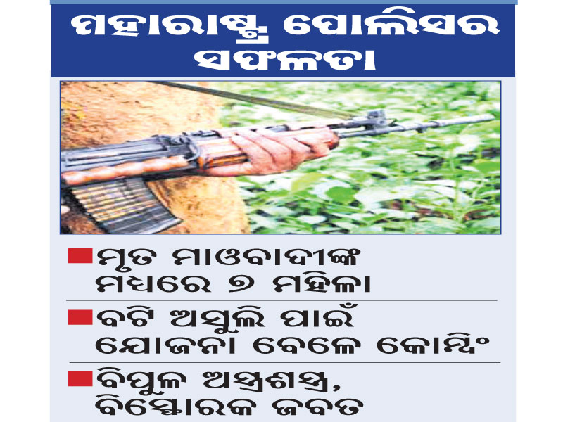 ଗଡ଼ଚିରୋଲି,୨୨ା୫: ମହାରାଷ୍ଟ୍ର ପୋଲିସକୁ ଶୁକ୍ରବାର ବଡ଼ ସଫଳତା ମିଳିଛି। ଗଡ଼ଚିରୋଲି ଜିଲା ଏଟାପଲ୍ଲୀ ନିକଟସ୍ଥ ଘଞ୍ଚ ଜଙ୍ଗଲରେ ପୋଲିସ ଏନ୍‌କାଉଣ୍ଟରରେ ୧୩ ମାଓବାଦୀ ନିହତ ହୋଇଛନ୍ତି। ସେମାନଙ୍କ ମଧ୍ୟରୁ ୭ ଜଣ ମହିଳା ବୋଲି ରାଜ୍ୟ ଗୃହମନ୍ତ୍ରୀ ଦିଲୀପ ଓ୍ବାଲ୍‌ସେ ପାଟିଲ ସୂଚନା ଦେଇଛନ୍ତି।