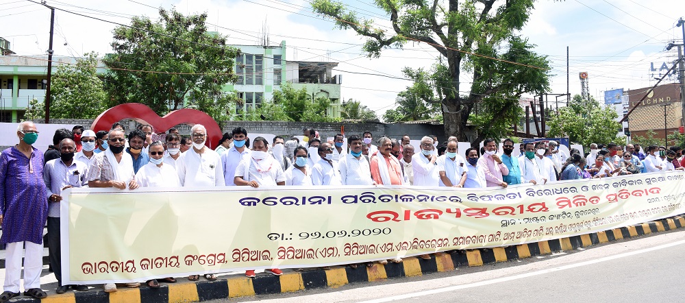 ଭୁବନେଶ୍ୱର,୨୭ା୬(ବ୍ୟୁରୋ): କରୋନା ସମୟରେ ରାଜ୍ୟ ସରକାରଙ୍କ ପରିଚାଳନାଗତ ବିଫଳତାକୁ ନେଇ ଶୁକ୍ରବାର କଂଗ୍ରେସ ସମେତ ରାଜ୍ୟର ୧୩ ରାଜନୈତିକ ଦଳ ଭୁବନେଶ୍ୱରସ୍ଥିତ ମାଷ୍ଟରକ୍ୟାଣ୍ଟିନ ଛକଠାରେ ବିକ୍ଷୋଭ ପ୍ରଦର୍ଶନ କରିଛନ୍ତି। ତାଲାବନ୍ଦ ଯୋଗୁ ରାଜ୍ୟ ତଥା ଦେଶର ଅର୍ଥନୀତି ବିପର୍ଯ୍ୟସ୍ତ ହୋଇପଡିଛି। ଏହାସହ ଦେଶର କୋଭିଡ୍ ଟେଷ୍ଟିଂ ହାର ଯଥେଷ୍ଟ କମ୍ ରହିଥିବାରୁ ସଂକ୍ରମଣ ଦିନକୁ ଦିନ ବଢିବାରେ ଲାଗିଛି ବୋଲି ରାଜନୈତିକ ଦଳଗୁଡିକ ଅଭିଯୋଗ କରିଛନ୍ତି। ଏନେଇ ସେମାନେ ରାଜ୍ୟପାଳଙ୍କୁ ଭେଟି ଦାବିପତ୍ର ପ୍ରଦାନ କରିଛନ୍ତି। ଏହାସହ ଦୁର୍ଦ୍ଦଶା ଭୋଗୁଥିବା ପ୍ରବାସୀ ତଥା ଆୟକର ପରିସରଭୁକ୍ତ ହୋଇ ନ ଥିବା ପରିବାରକୁ ମାସିକ ୭ହଜାର ୫୦୦ଟଙ୍କା ଦେବାକୁ ସେମାନେ ଦାବି କରିଛନ୍ତି। କରୋନା ମହାମାରୀ ପରିଚାଳନାରେ ବିଫଳତା ସହିତ ବ୍ୟାପକ ଦୁର୍ନୀତି ତଥା ଜନସାଧାରଣଙ୍କ ଜୀବନ ଜୀବିକା ଦୁର୍ବିଷହ ହୋଇଥିବା ସମ୍ପର୍କରେ ମଧ୍ୟ ଅଭିଯୋଗ ଆଣିଛନ୍ତି।