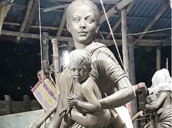 କୋଲକାତା, ୧୯।୧୦: ମହାମାରୀ କରୋନା ସମୟରେ ସବୁଠାରୁ ଅଧିକ କଷ୍ଟ ସହିବାକୁ ପଡ଼ିଥିଲା ପ୍ରବାସୀ ଶ୍ରମିକଙ୍କୁ। ସେମାନଙ୍କୁ ନିଜ ଘରକୁ ଫେରିବା ପାଇଁ ଶହ ଶହ କିଲୋମିଟର ଚାଲିବାକୁ ପଡ଼ିଥିଲା। ଏହି ସମୟରେ ସେମାନଙ୍କ ଗୋଡ଼ ଫାଟିଯାଉଥିବା ବେଳେ ପୋଲିସ ଠାରୁ ମାଡ଼ ମଧ୍ୟ ଖାଇବାକୁ ପଡ଼ୁଥିଲା। ଏହି ସମୟର ଅନେକ ଫଟୋ ଏବେ ଏବଂ ଭିଡିଓ ଆମେ ଦେଖିଛୁ। ହେଲେ ଦୁଃଖର କଥା, କିଛି ଲୋକ ନିଜ ଘରେ ପହଞ୍ଚିବା ପୂର୍ବରୁ ଜୀବନ ହାରିଦେଉ ଥିଲେ। ମା’ମାନେ ନିଜ ପିଲାମାନଙ୍କୁ କାନ୍ଧରେ ଧରି ଚାଲୁଥିବା ମଧ୍ୟ ଆମେ ଫଟୋ ଏବଂ ଭିଡିଓରେ ଦେଖୁଛୁ। ଏହାରି ମଧ୍ୟରେ ଦୂର୍ଗା ପୂଜାକୁ ଆଉ ଅଳ୍ପ ଦିନ ବାକି ରହିଥିବା ବେଳେ ମା’ଙ୍କ ମୂର୍ତ୍ତି ତିଆରି ଆରମ୍ଭ ହୋଇଯାଇଛି। ତେବେ କୋଲକାତାର ଏକ ଦୁର୍ଗା ପୂଜା ମଣ୍ଡପରେ ପ୍ରବାସୀ ଶ୍ରମିକଙ୍କ ସଂଘର୍ଷର ଯାତ୍ରା ସମୟର ଏକ ମୂର୍ତ୍ତି ତିଆରି ହେଉଛି। ଜଣେ ମା’ ତାର ଶିଶୁକୁ କୋଳରେ ଧରି ଖାଲି ପାଦରେ ଖରାରେ ଘରକୁ ଯାଉଥିବା ସମୟର ଏହି ପ୍ରତିମୂର୍ତ୍ତି ତିଆରି ହୋଇଛି। ଟୁଇଟରରେ ଏହି ଫଟୋ ଏବେ ଭାଇରାଲ ହେବାରେ ଲାଗିଛି। ଲୋକମାନେ ଏହି ମଣ୍ଡପର ମୂର୍ତ୍ତିକୁ ଦେଖିବା ପାଇଁ ଉତ୍ସାହର ସହ ଚାହିଁ ବସିଛନ୍ତି।