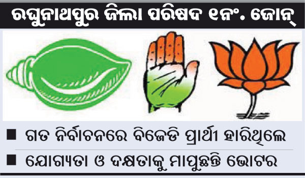 ଜଗତ୍ସିଂହପୁର ଅଫିସ, ୫।୨: ଜଗତ୍ସିଂହପୁର ଜିଲାର ୨୬ ଜିଲା ପରିଷଦ ଆସନ ମଧ୍ୟରୁ ରଘୁନାଥପୁର ଜିଲା ପରିଷଦ ୧ନଂ. ଜୋନ୍ର ଗୁରୁତ୍ୱ ରହିଛି। କାରଣ ୨୦୧୭ ନିର୍ବାଚନରେ ଏହି ଜୋନ୍ରେ ବିଜେଡିକୁ ହରାଇ ଭାଜପା ପ୍ରାର୍ଥୀ ବିଜୟୀ ହୋଇଥିଲେ। ଏଥର ଭାଜପାକୁ ଚେକ୍ ଦେବା ପାଇଁ ବିଜେଡି ନେତୃତ୍ୱ ଅଣ୍ଟା ଭିଡିଥିବା ବେଳେ କଂଗ୍ରେସ ପକ୍ଷରୁ ପ୍ରଚାର କାର୍ଯ୍ୟ ଜୋର୍ଦାର କରାଯାଇଛି।