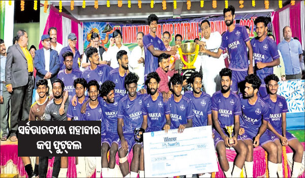 ଟାଙ୍ଗୀ (ଖୋର୍ଦ୍ଧା),୩୧ା୧୨ (ଡି.ଏନ୍.ଏ.): ମହାବୀର ଆଥଲେଟିକ୍ ଆସୋସିଏଶନ ଆନୁକୂଲ୍ୟରେ କୁହୁଡ଼ି ଜନତା ହାଇସ୍କୁଲ ଷ୍ଟାଡିୟମରେ ଚାଲିଥିବା ୬୩ତମ ସର୍ବଭାରତୀୟ ମହାବୀର କପ୍ ଫୁଟ୍ବଲ ଟୁର୍ନାମେଣ୍ଟରେ ଚାମ୍ପିୟନ ଆଖ୍ୟା ଅର୍ଜନ କରିଛି ତ୍ରିଶୁର ଫୁଟ୍ବଲ କ୍ଲବ ପଣ୍ଡିଚେରୀ। ଶୁକ୍ରବାର ଖେଳାଯାଇଥିବା ଫାଇନାଲରେ ଏହି ଦଳ ଟାଇବ୍ରେକରରେ ୪-୩ ଗୋଲରେ ଚେନ୍ନାଇ ପୋଲିସ ଟିମ୍କୁ ପରାସ୍ତ କରିଛି। ମ୍ୟାଚ୍ଟି ସଂଘର୍ଷପୂର୍ଣ୍ଣ ହୋଇଥିଲା। ନିର୍ଦ୍ଧାରିତ ସମୟ ଖେଳ ୧-୧ ଗୋଲରେ ଅମୀମାଂସିତ ରହିବାରୁ ଟାଇବେକ୍ରରର ସହାୟତା ନିଆଯାଇଥିଲା। ଏଥିରେ ପଣ୍ଡିଚେରୀ ଟିମ୍ ୪ଟି ଗୋଲ୍ ଦଇଥିବା ବେଳେ ଚେନ୍ନାଇ ପୋଲିସ ଟିମ୍ ୩ ଗୋଲ ଦେଇଥିଲା। ଶିବ ଶଙ୍କର ପଣ୍ଡା, ସୁବ୍ରତ ପୁରୋହିତ, ଦିଲୀପ କୁମାର ରାଉତ ଓ ପ୍ରଶାନ୍ତ କୁମାର ପାଲ ମ୍ୟାଚ୍ ପରିଚାଳନା କରିଥିଲେ। ମ୍ୟାଚ୍ କମିଶନର ଥିଲେ ଅପର୍ତ୍ତି ବେହେରା। ଆୟୋଜିତ ପୁରସ୍କାର ବିତରଣ ଉତ୍ସବରେ ଅତିଥିଭାବେ ରାଜ୍ୟ ସଭା ସଦସ୍ୟ ମାନସ କୁମାର ମଙ୍ଗରାଜ, ଡ. ସସ୍ମିତ୍ ପାତ୍ର ଓ ହିଜିବୁଲ୍ଲା ଖଁ।, ଖୋର୍ଦ୍ଧା ବିଧାୟକ ଜ୍ୟୋତିରୀନ୍ଦ୍ର ନାଥ ମିତ୍ର, ପୂର୍ବତନ କେନ୍ଦ୍ରମନ୍ତ୍ରୀ ବ୍ରଜକିଶୋର ତ୍ରିପାଠୀ, ବିଧାୟକ ଉମାକାନ୍ତ ସାମନ୍ତରାୟ, ପୂର୍ବତନ ବିଧାୟକ ରଘୁନାଥ ସାହୁ, ଟାଙ୍ଗୀ ବ୍ଲକ ଅଧ୍ୟକ୍ଷା ରିସ୍ନା ମାନ୍ଧାତା, ଅନ୍ନପୂର୍ଣ୍ଣା ଫାଇନାନ୍ସର ମୁଖ୍ୟ ସଞ୍ଜୟ କୁମାର ପଟ୍ଟନାୟକ, କାର୍ଯ୍ୟକାରୀ ସଭାପତି ଶୁଭେନ୍ଦୁ ମାନସିଂହ, ସମ୍ପାଦକ ମନୋଜ କୁମାର ମାନସିଂହ, ପରିଚାଳନା ସମ୍ପାଦକ କମଳାକାନ୍ତ ସାମନ୍ତରାୟ ପ୍ରମୁଖ ଯୋଗଦେଇ ଚାମ୍ପିୟନ ଟିମ୍କୁ ଟ୍ରଫି ସହିତ ୫୦ ହଜାର ଓ ରନର୍ସ ଅପ୍ ଟିମ୍କୁ ଟ୍ରଫି ସହ ୩୦ ହଜାର ଟଙ୍କା ପ୍ରଦାନ କରିଥିଲେ। ଏହି ଅବସରରେ ଶ୍ରେଷ୍ଠ ସ୍ବେଚ୍ଛାସେବୀ ଲକ୍ଷ୍ମୀଧର ଦଳାଇଙ୍କୁ ସମ୍ମାନିତ କରାଯାଇଥିଲା।